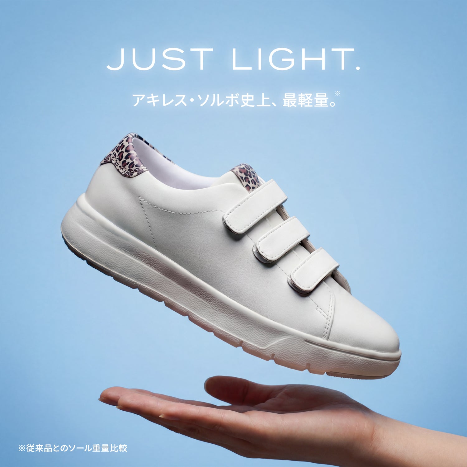 ソフトな革で足をつつみ、衝撃吸収素材ソルボセインと柔軟なソールで地面の存在さえ忘れさせる。