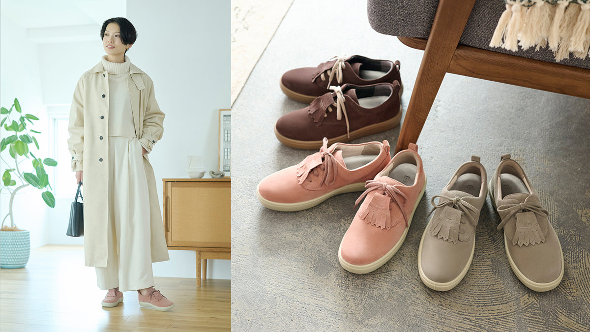 「足当たりが心地よいアッパー素材」「すっと履ける手軽さ」「驚きの軽さ」が特長で、セカンドシューズとしてもおすすめです。