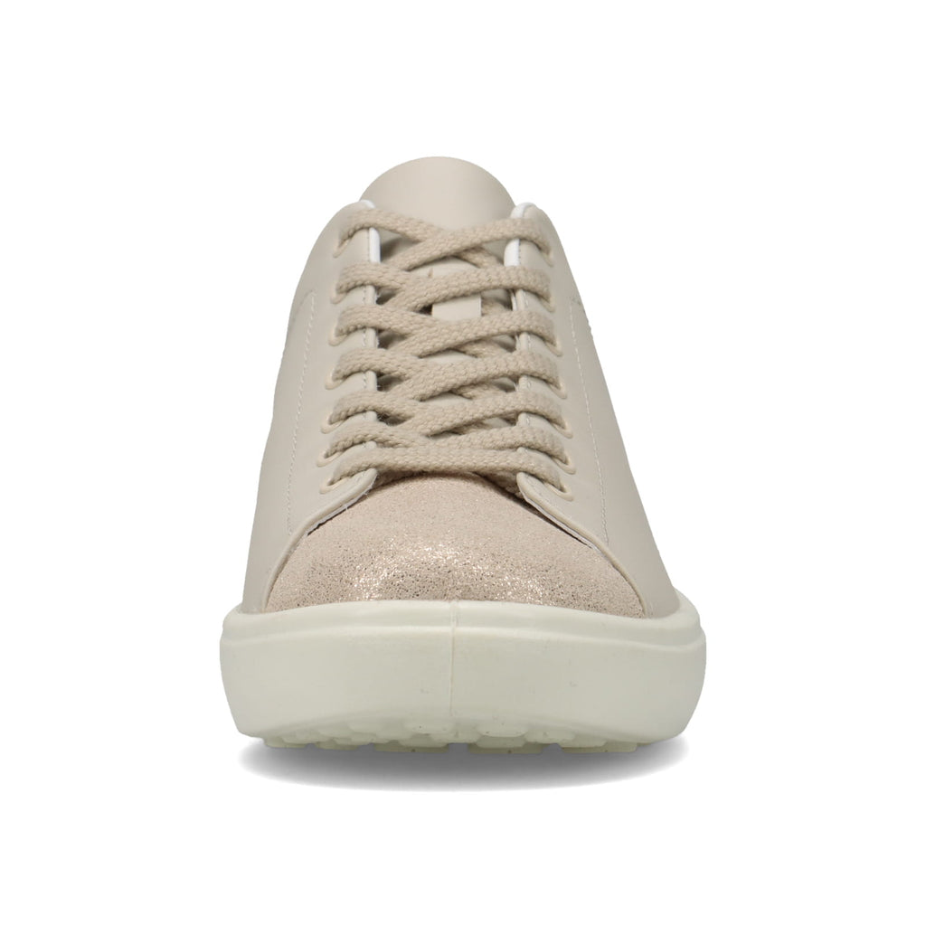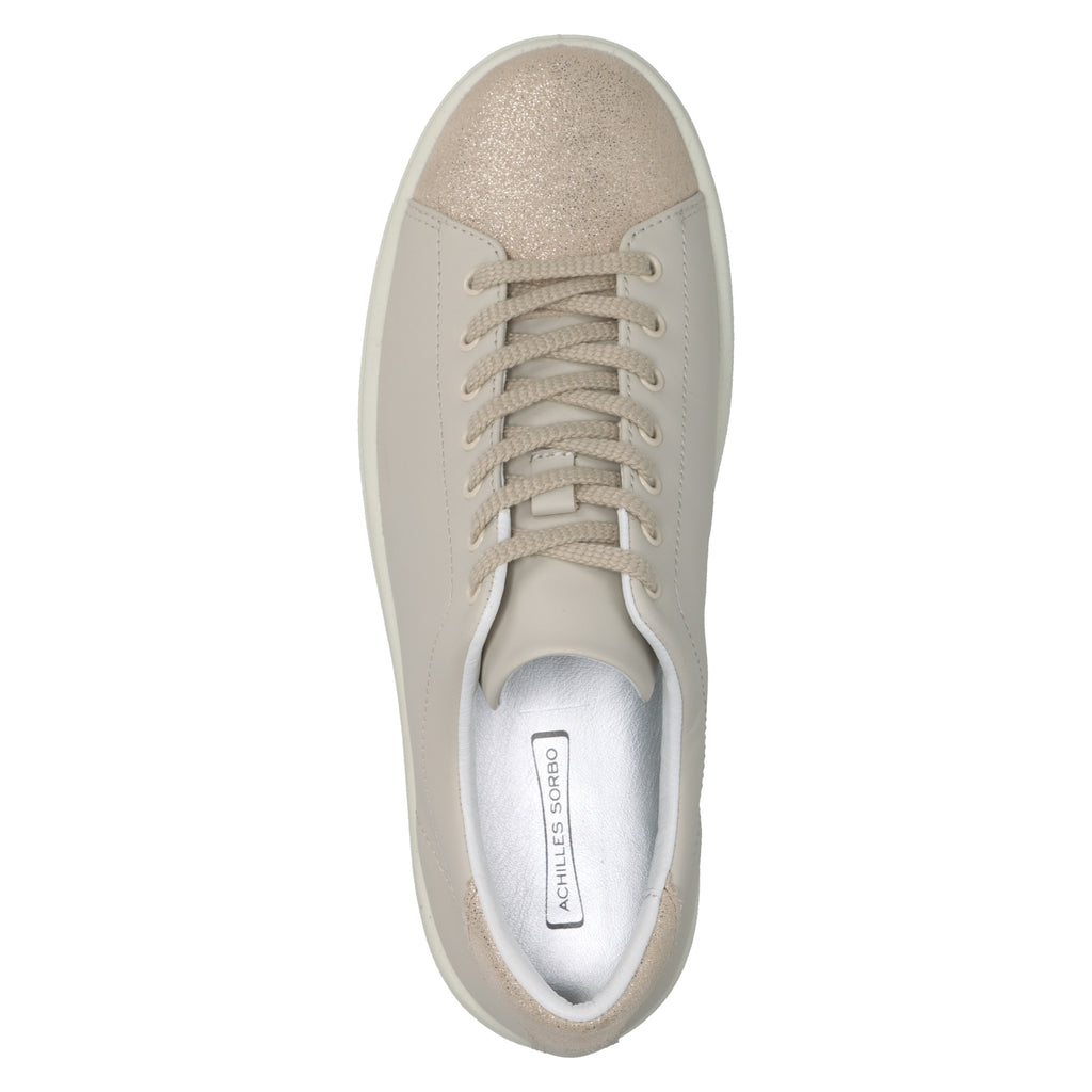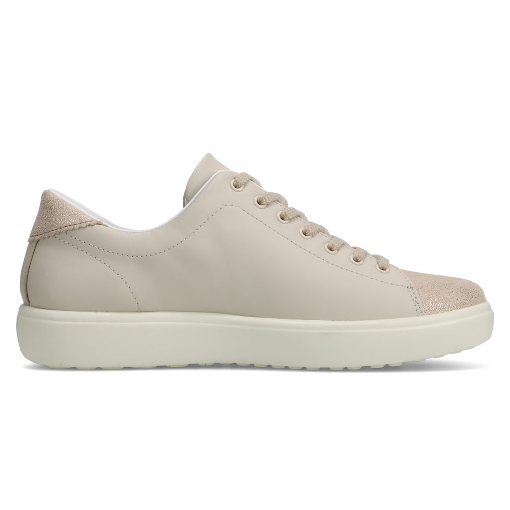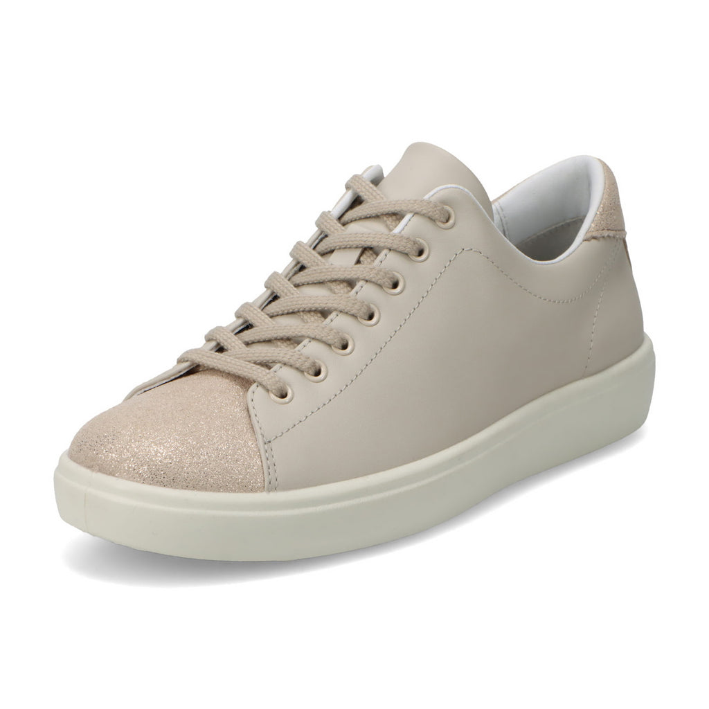 つま先とかかと部分には、上品にきらめくラメ革を使用。シンプルな中にも華やかさがあり、足元を軽やかに見せてくれます。