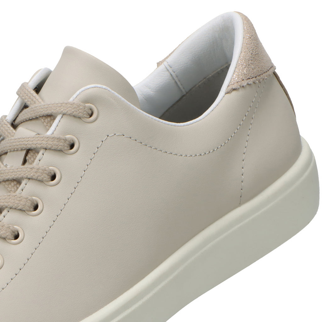 装飾を抑えたミニマルなデザインに、上質な牛革を組み合わせたレースアップスニーカー。多めに配置されたシューホールが、さりげなく大人の落ち着きを演出します。