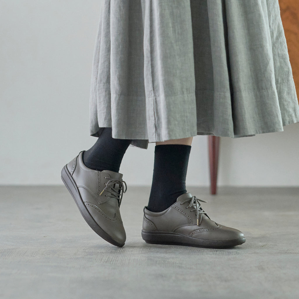 マニッシュな印象のウィングチップデザインにスニーカーの履き心地をプラス。ON-OFF、様々なシーンで活躍。