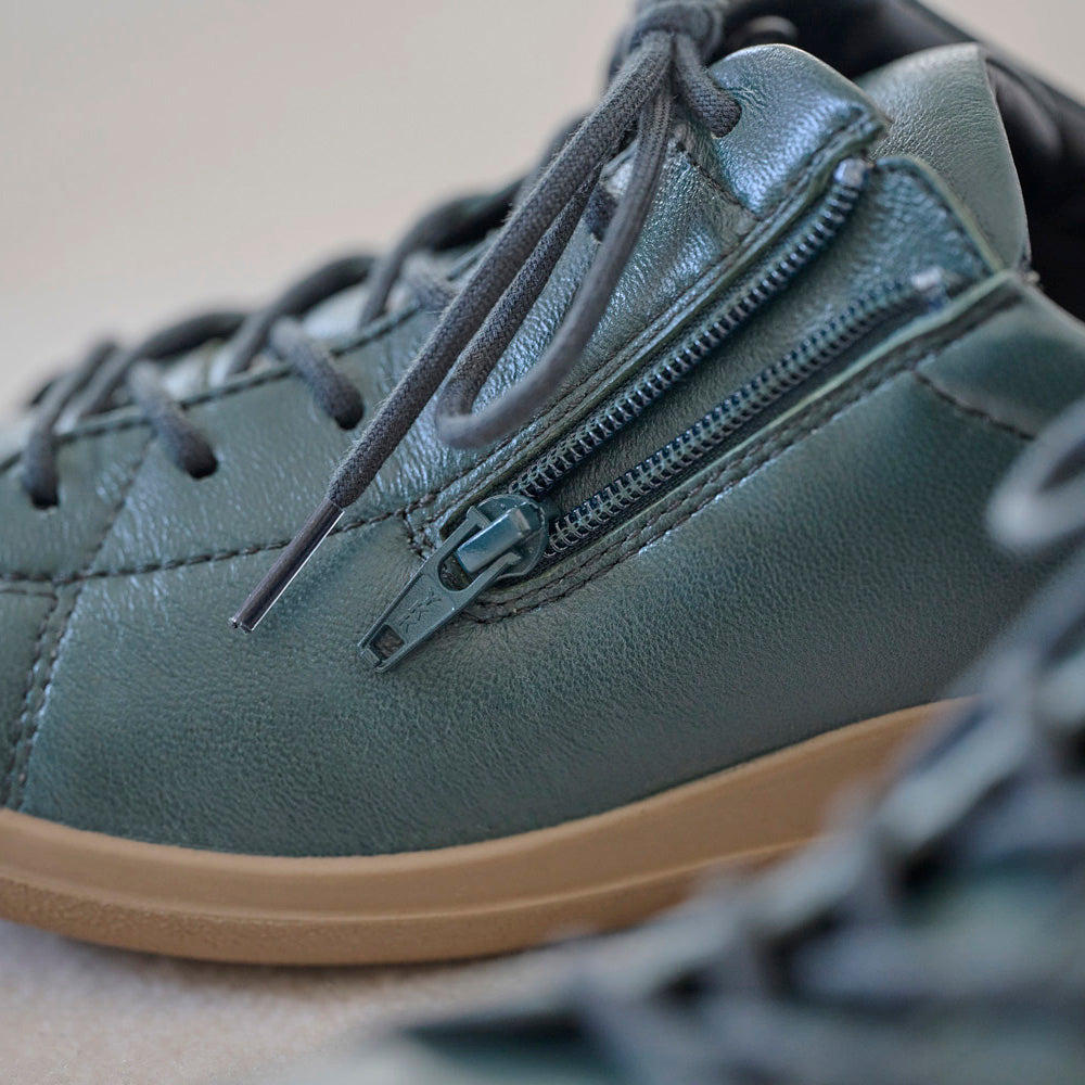紐を結び直す必要がなく、スムーズに脱ぎ履きできる内側ファスナー。