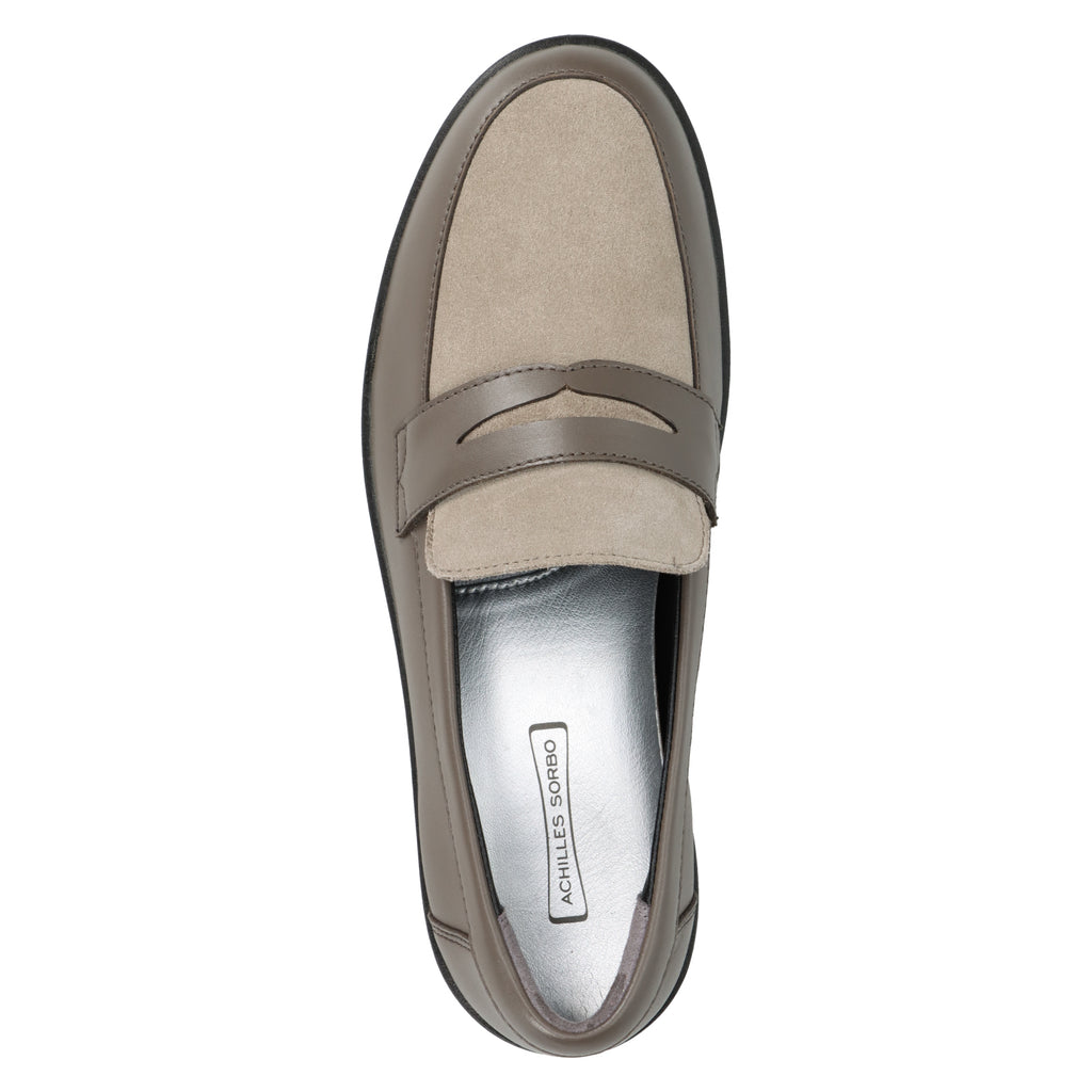 新登場のチャコール/スエードグレーは、スムースレザーと起毛素材のコンビネーションが魅力。落ち着きのあるカラーに素材感が加わり、コーディネートを上品に引き立てます。