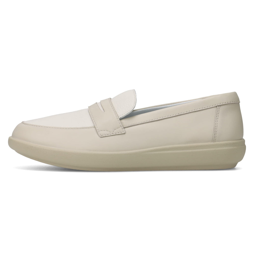 上質な牛革を使用した、すっきりとした印象の一足。足なじみの良い柔らかなレザーがやさしくフィットし、2E設計で足幅が細めの方にも心地よくお履きいただけます。装飾を抑えたミニマルなデザインは、装いを選ばず幅広いシーンで活躍。スムーズな着脱も日常使いにうれしいポイントです。