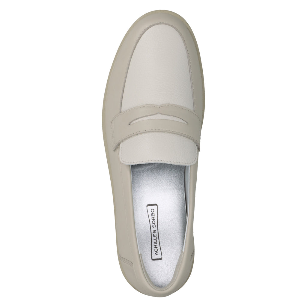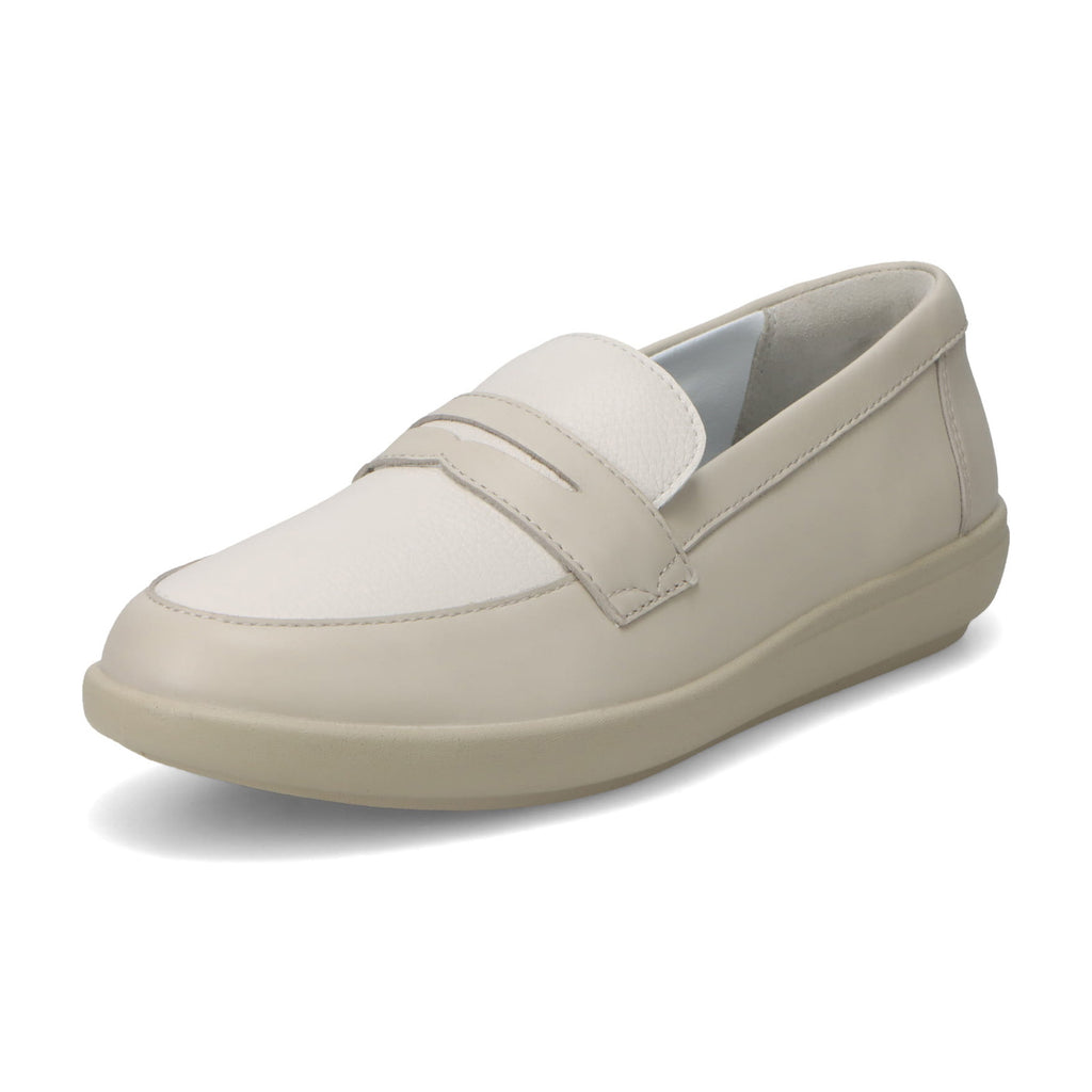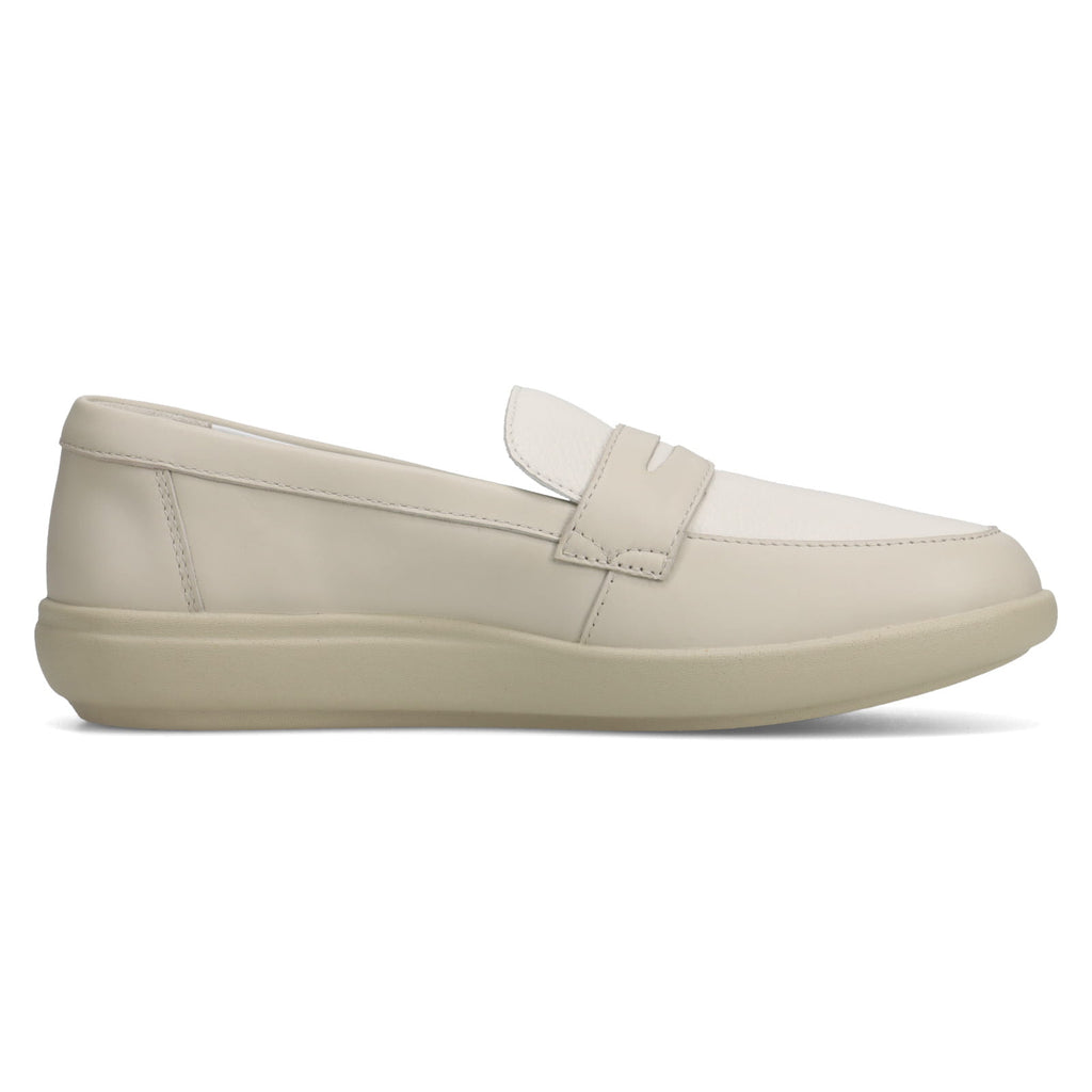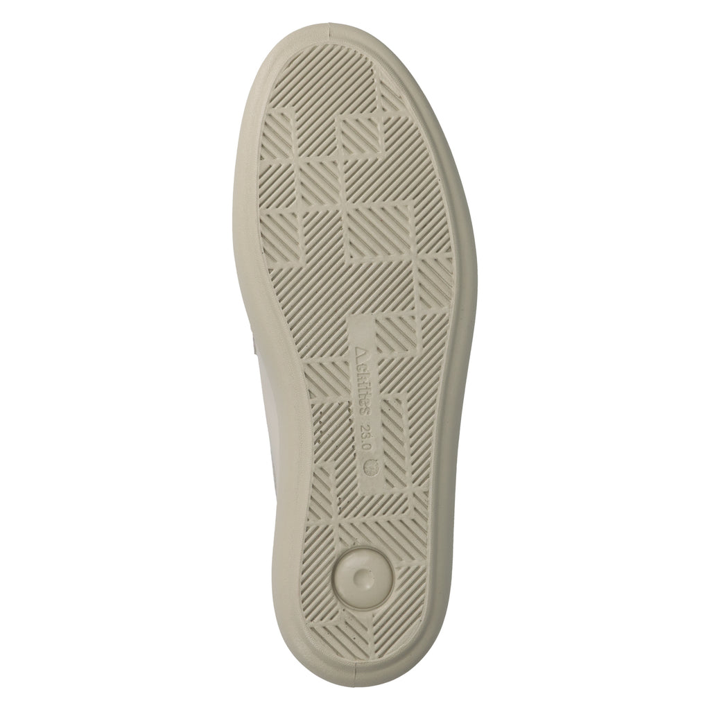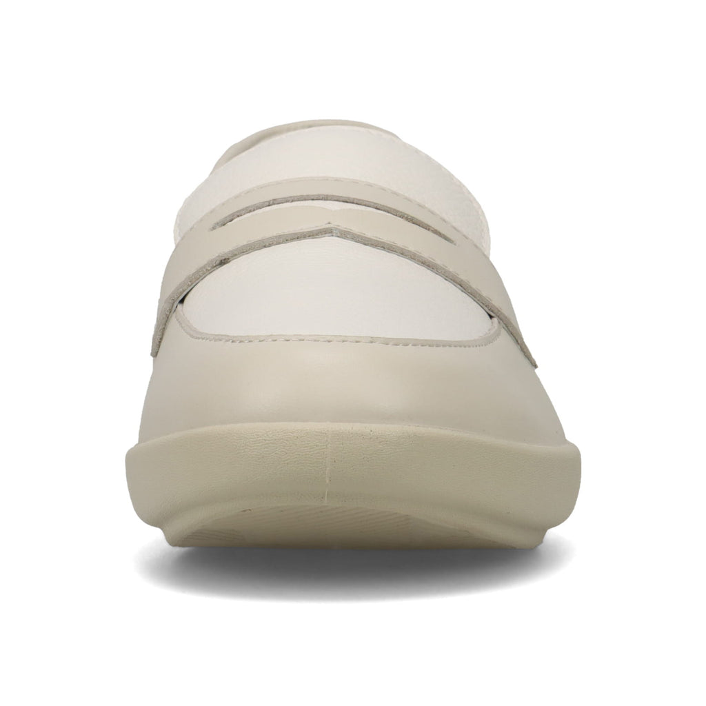 新色のアイスグレー/白は、やわらかな印象のカラーリングに、甲部分のシボ革とスムース革を組み合わせた上品な仕上がり。素材の表情の違いがさりげないアクセントとなり、軽やかで洗練された足元を演出します。