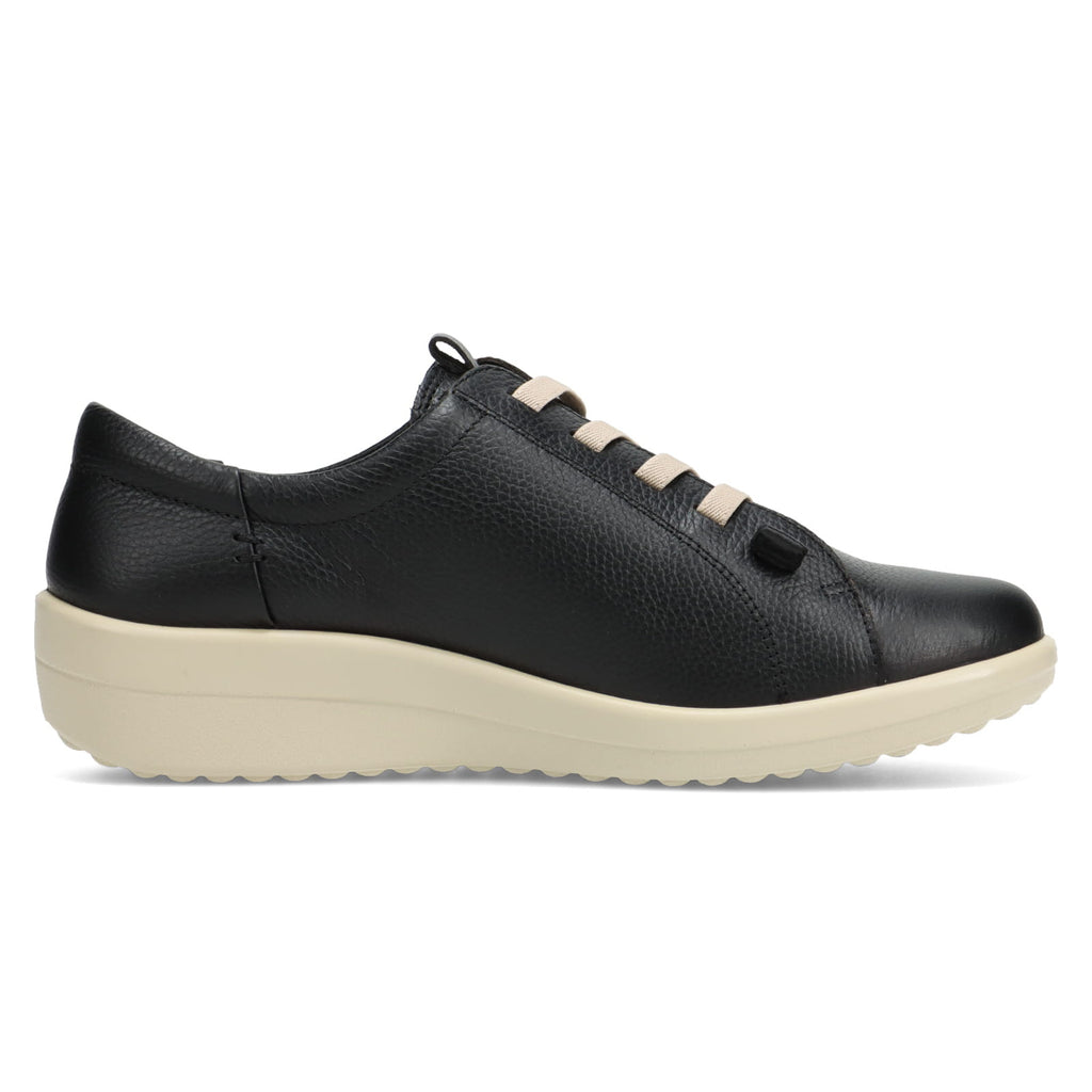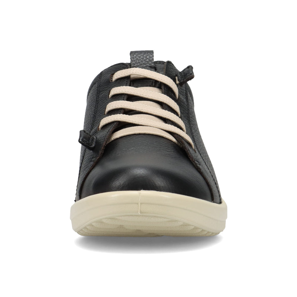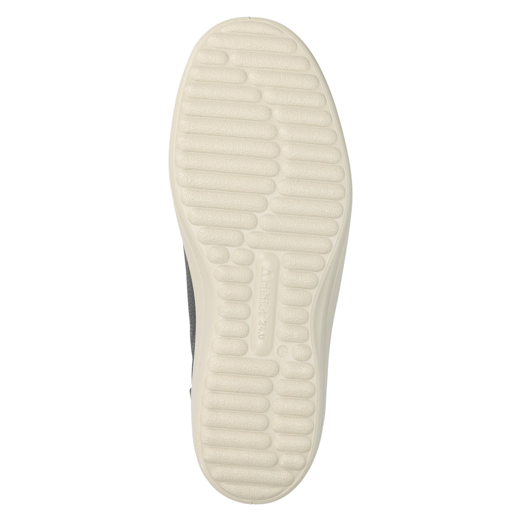 甲にはアキレス・ソルボで人気のゴム紐デザインを採用。脱ぎ履きがしやすく、太めのゴム紐がさりげないアクセントにもなっています。ゆったりとした4E木型で、幅広の方や甲高の方にもおすすめ。牛革ならではの柔らかさが足になじみ、日常使いしやすい一足です。