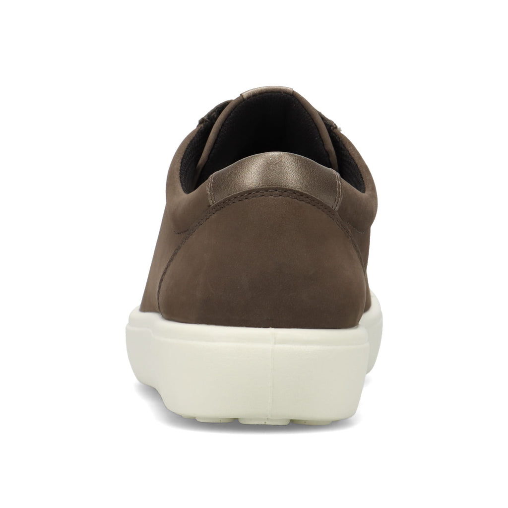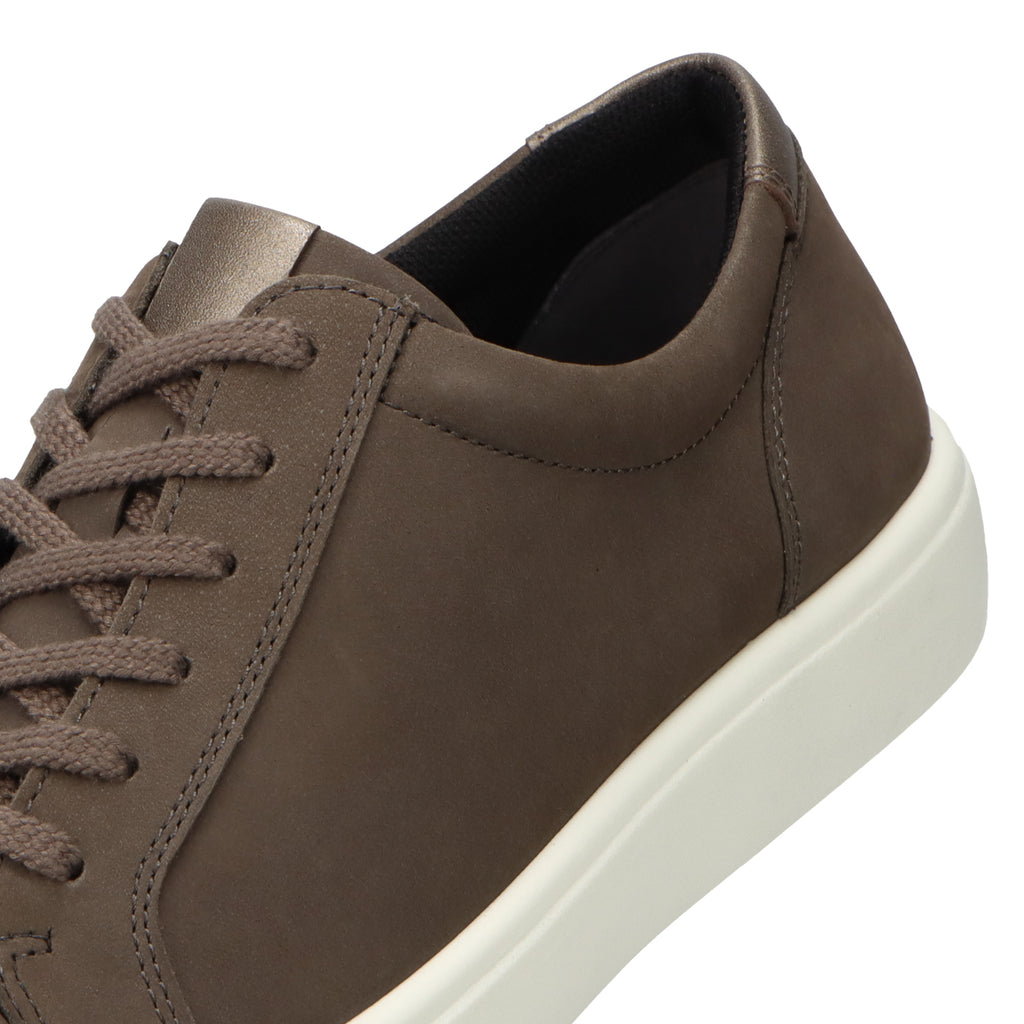 足幅に合わせて調整しやすい外羽根タイプ。また、砂除けと踵部に配置された同色のレザーが、洗練された印象を与えます。