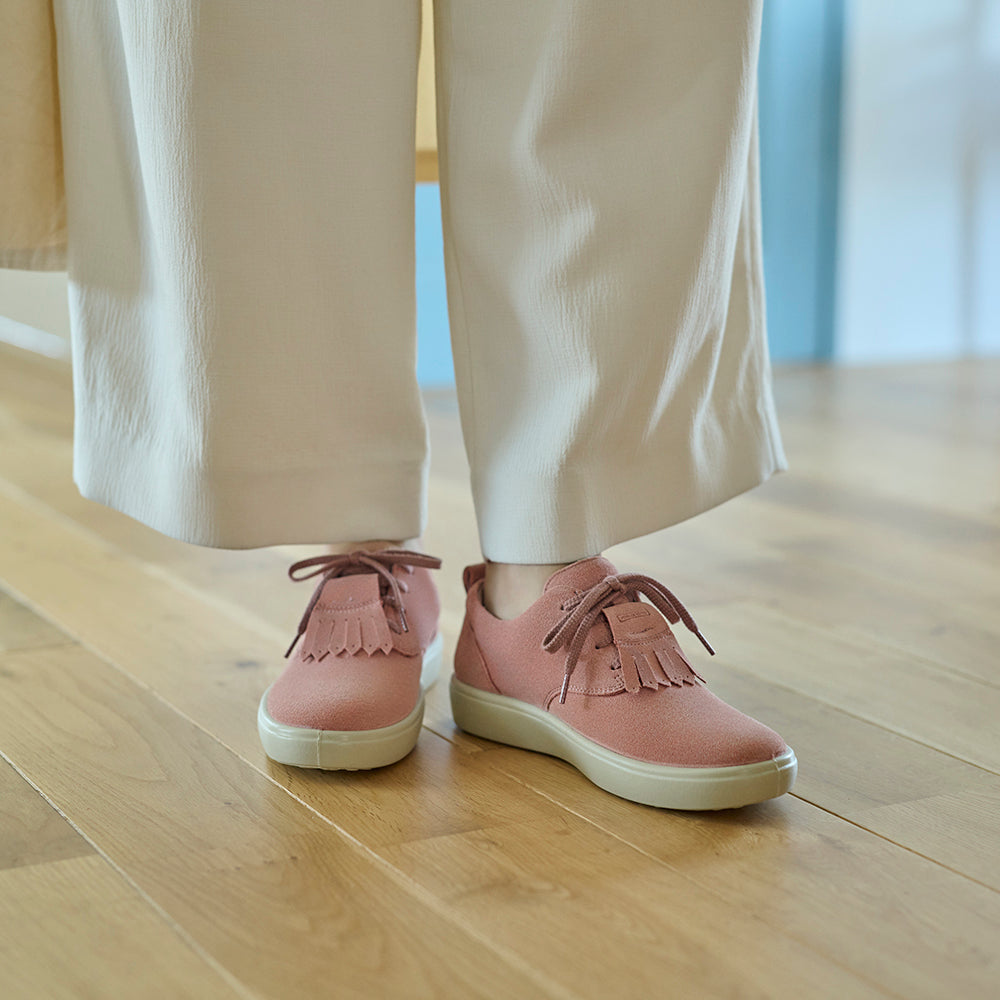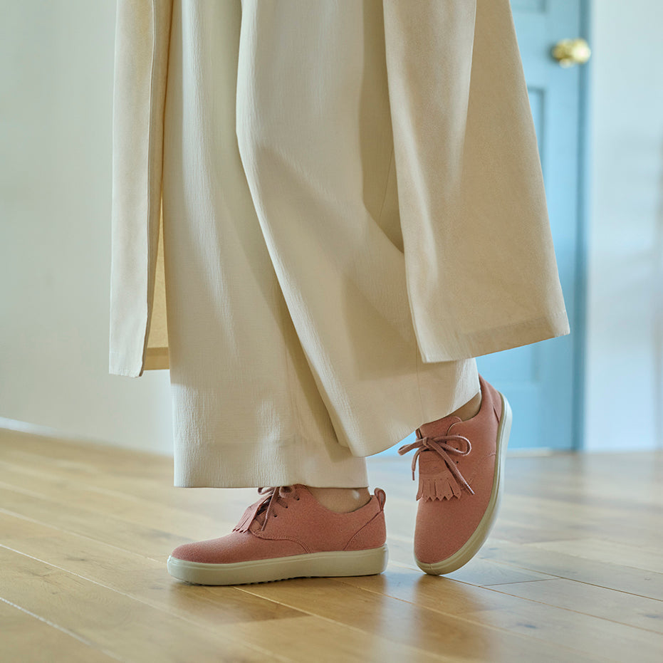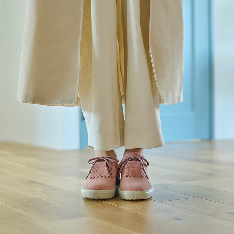 キルトタン付きの2Wayデザインで表情を変えられる一足。キルトをつければトラッドな雰囲気を楽しめ、取り外せばすっきりとした都会的なスニーカーに。やわらかなスエード素材が足を包み込み、履き口にはウレタンを施して快適な足あたりを実現しました。普段のお出かけから旅行まで幅広いシーンで活躍し、大人の足元にナチュラルな上品さを添えてくれます。