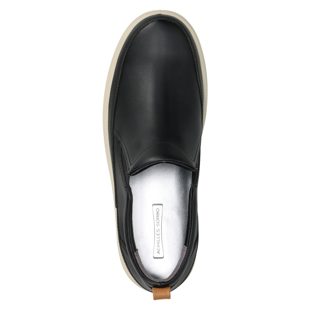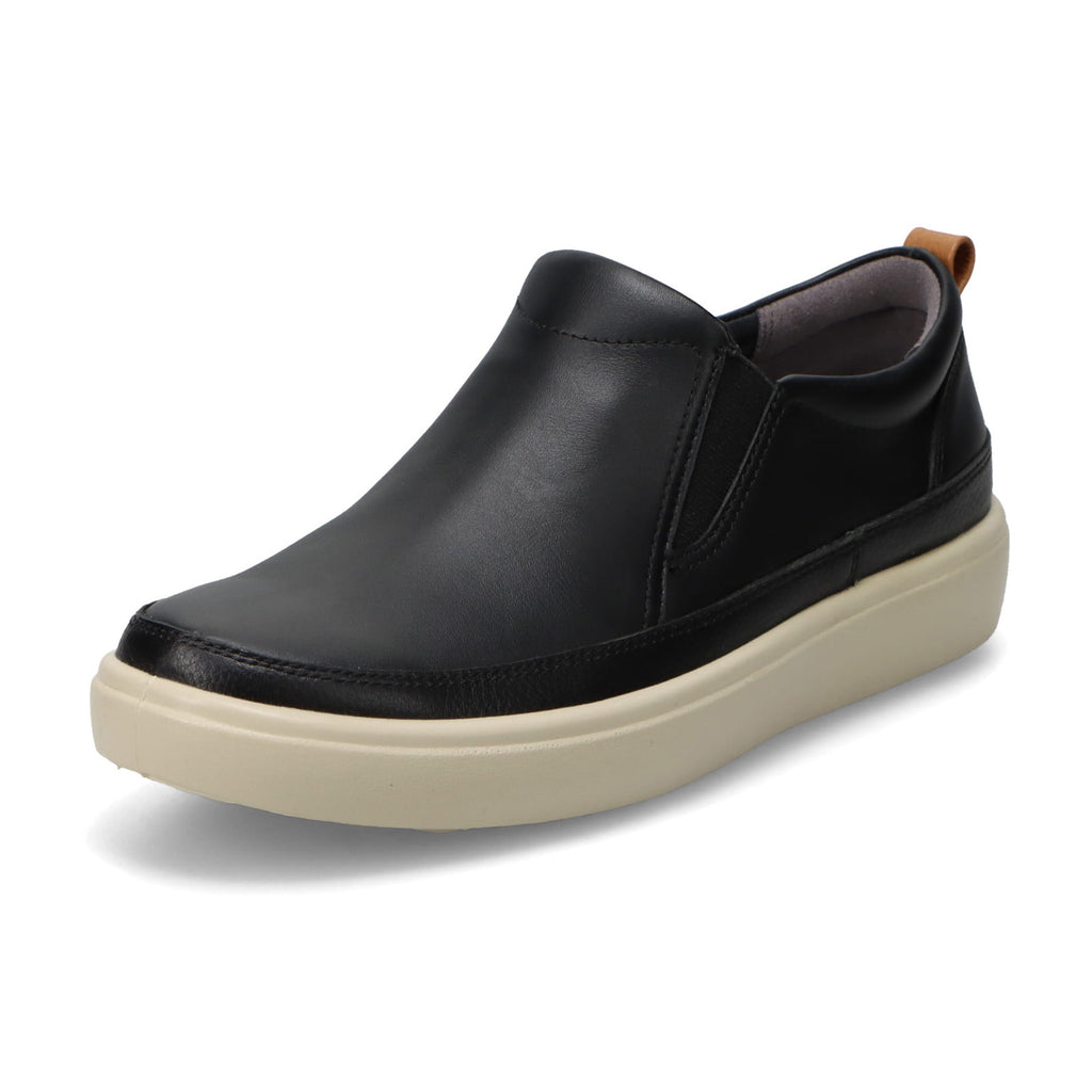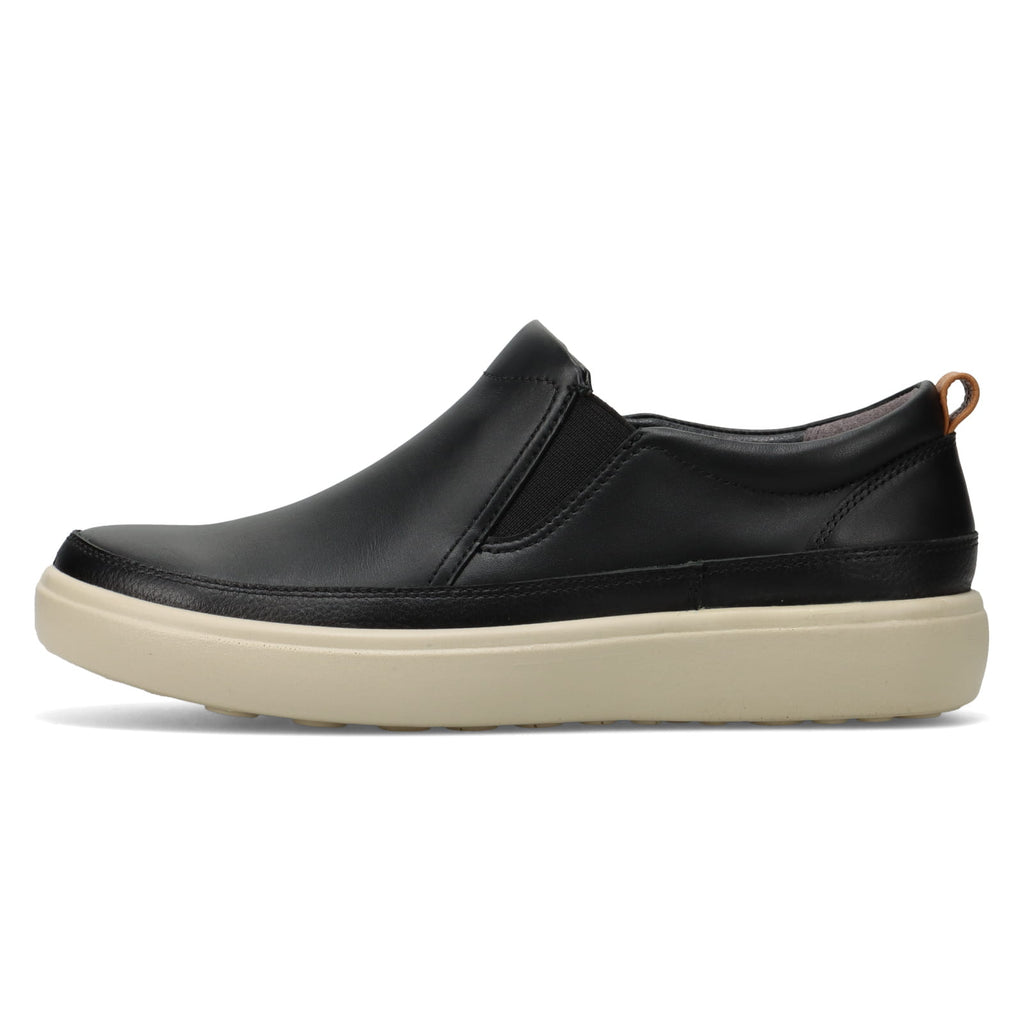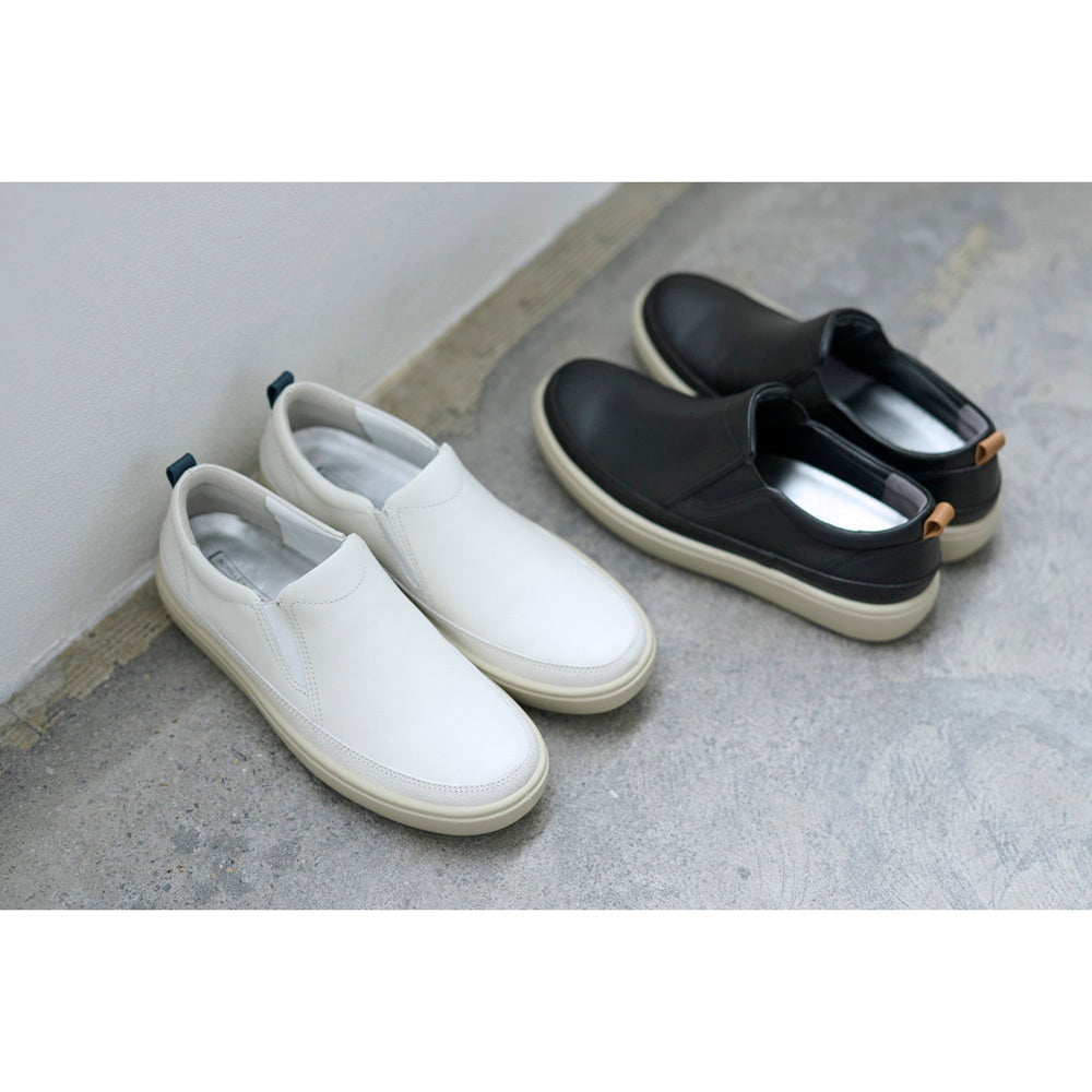 上質なスムース革とシボ革を組み合わせた、飽きのこないシンプルなスリッポン。踵部分の異なる色のシボ革が、さりげない遊び心を添えています。両サイドのゴムで足をやさしく包み込み、履き口の柔らかいウレタンが足当たりを快適に。カジュアルにもきれいめにもマッチする、オンオフ活躍の一足です。