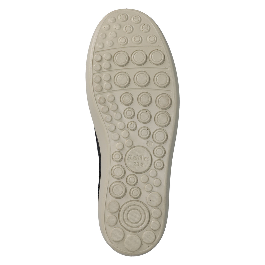 踵の異なる色のシボ革が、さりげない遊び心をプラス。