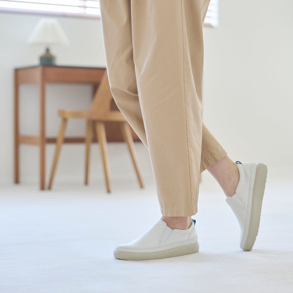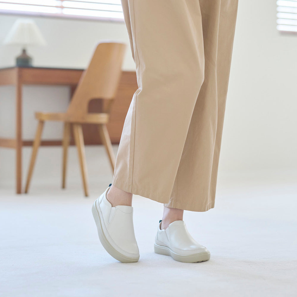 上品な白とシックな黒の2色展開のシンプルレザースリッポン