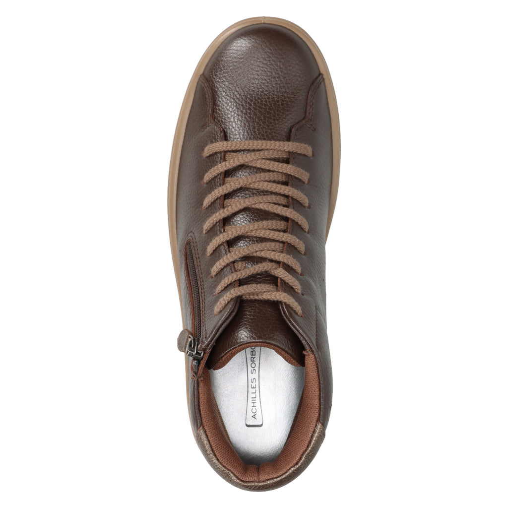シンプルな装いにさりげなく映える、上品で個性的なハイカットシューズ。