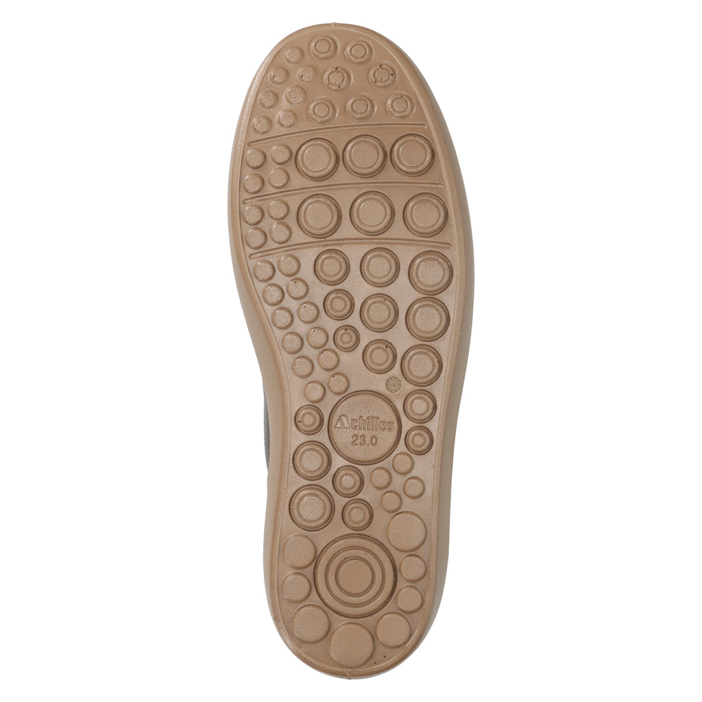 履き口まわりにはウレタンを配し、やわらかく足を包み込みます。一度紐を調整すれば、サイドファスナーで脱ぎ履きもスムーズ。ファスナーの楕円形の引き手やコンビカラーの配色がクラフト感を引き立て、足元を軽やかに演出します。