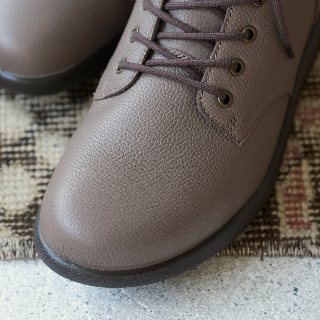 撥水加工を施した上質レザーが、秋冬の装いに上品なアクセントをプラス。カジュアルにもきれいめスタイルにも馴染む、大人のための快適ブーツです。