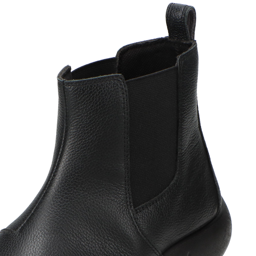 牛革の上質感と機能性を両立した、撥水仕様の4Eサイドゴアブーツ。〈メディフラット・アナトミー設計〉により、足裏のアーチを自然に支え、長時間の歩行も快適にサポートします。