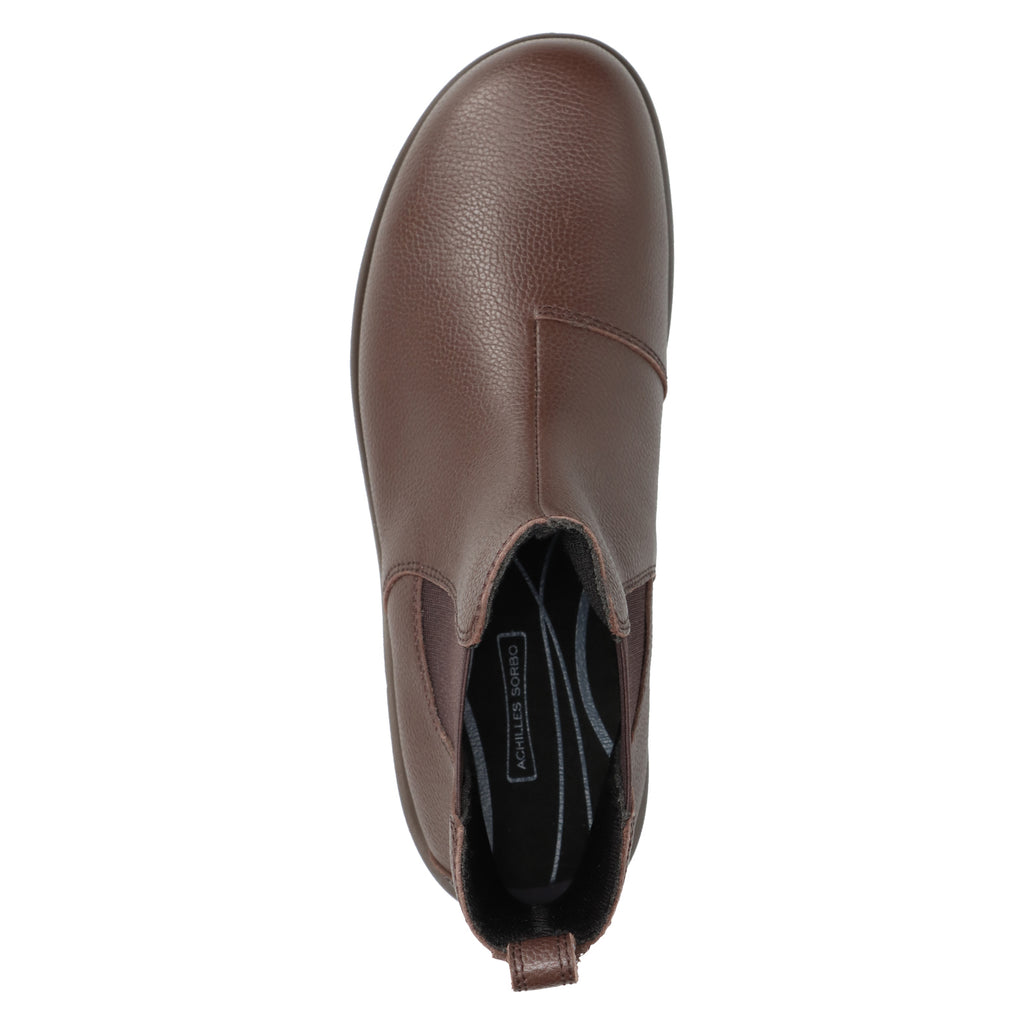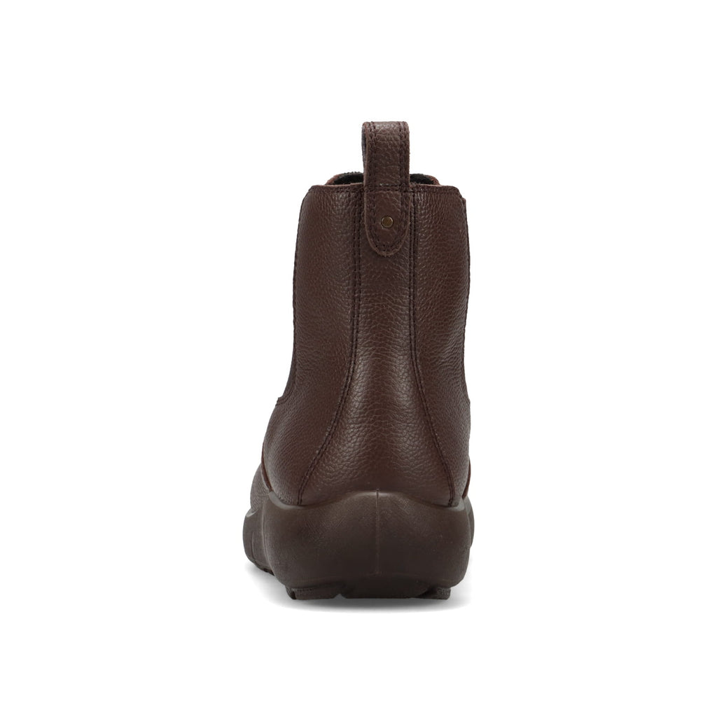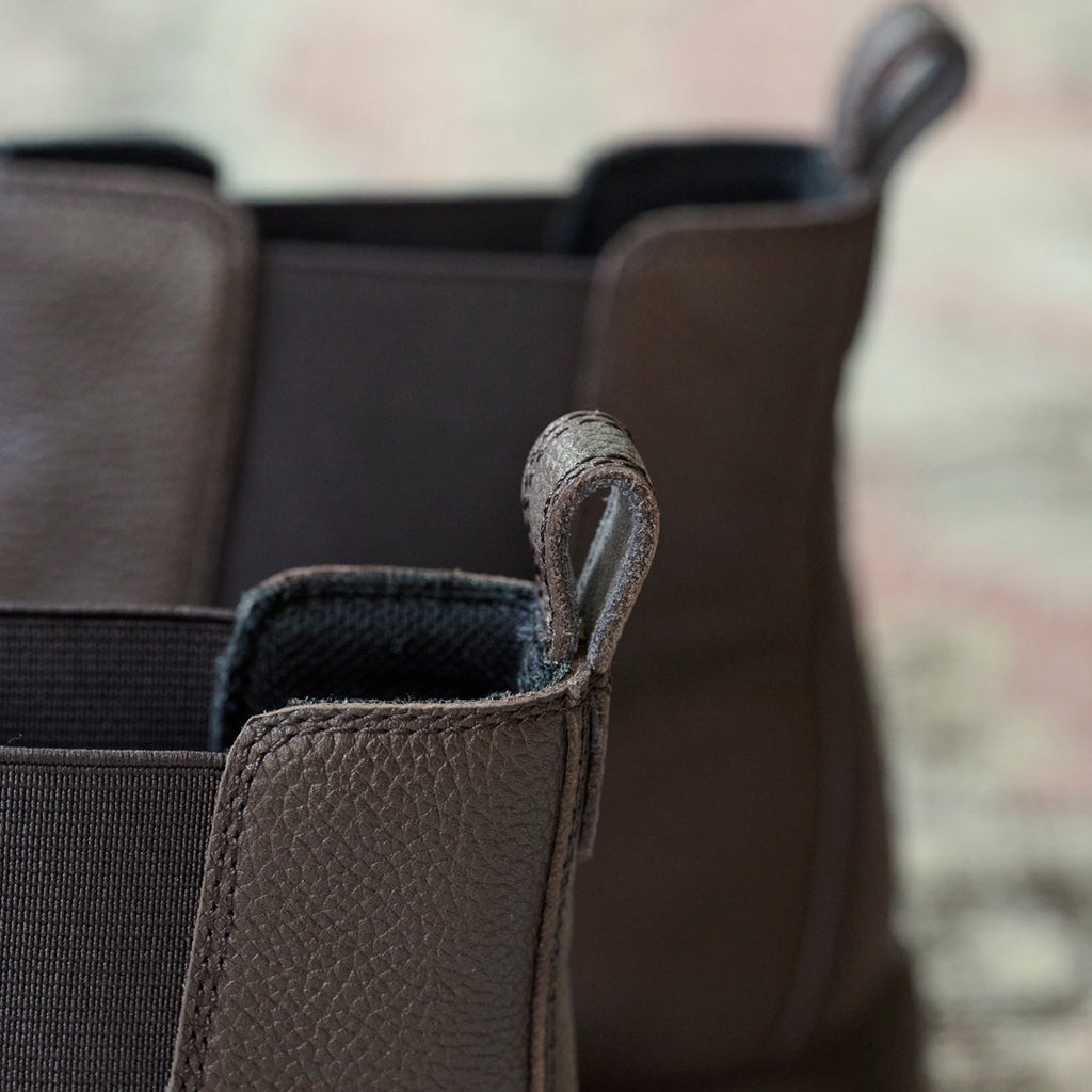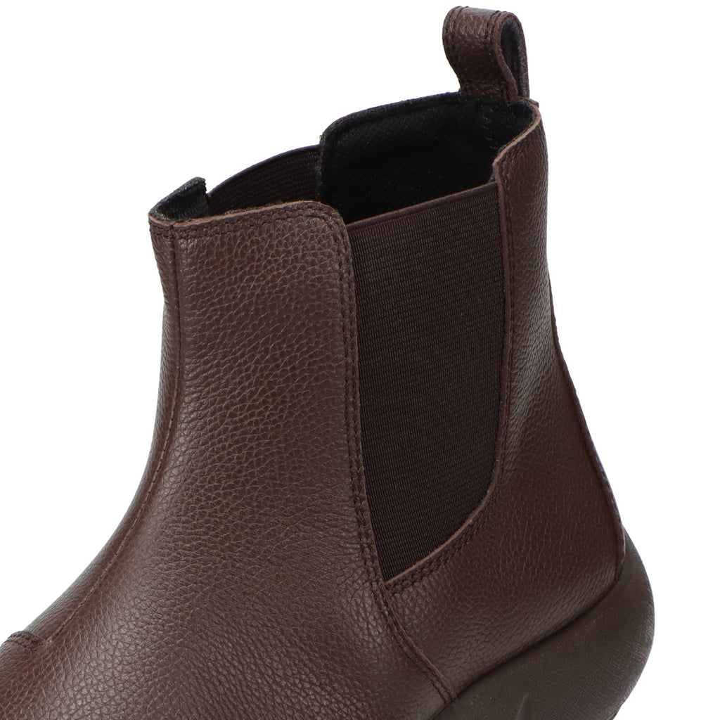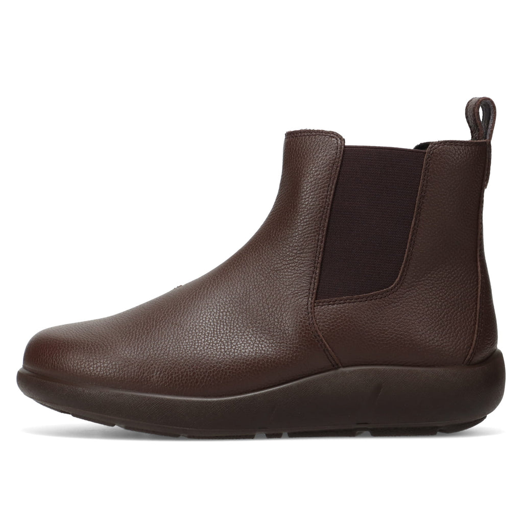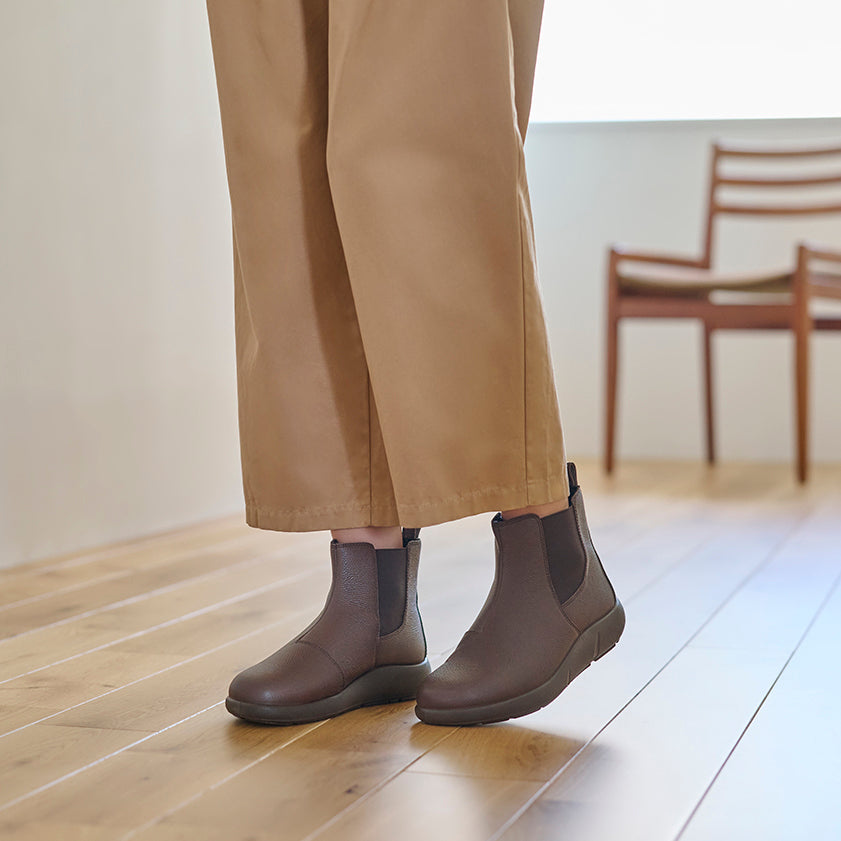 牛革の上質感と機能性を両立した、撥水仕様の4Eサイドゴアブーツ。〈メディフラット・アナトミー設計〉により、足裏のアーチを自然に支え、長時間の歩行も快適にサポートします。