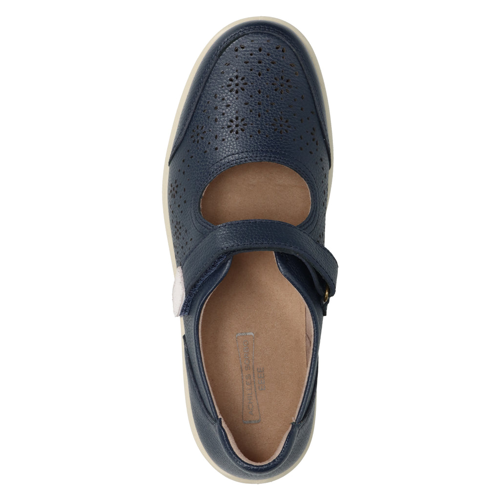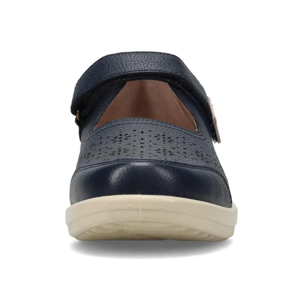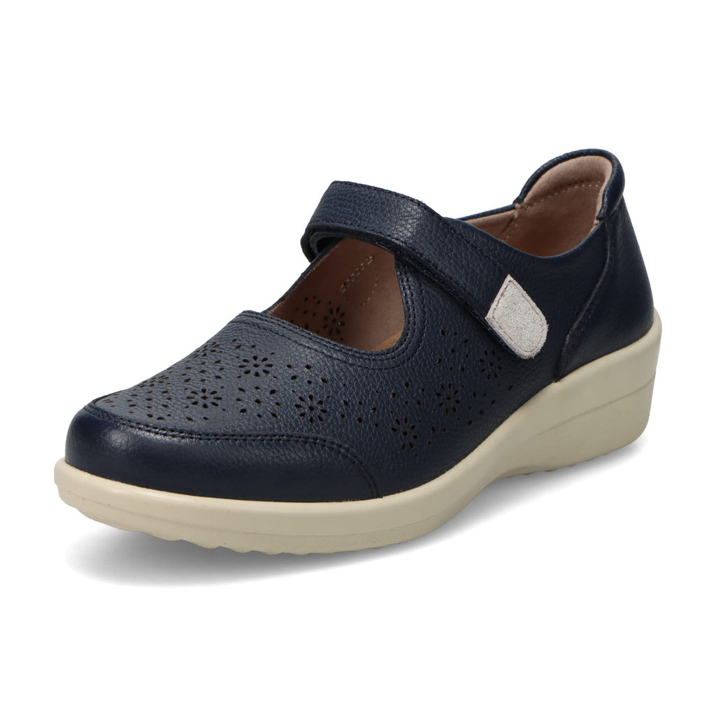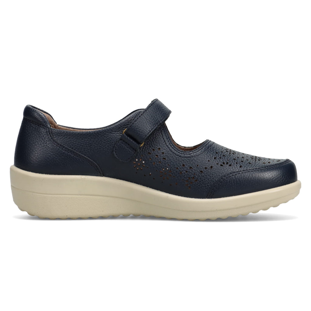 涼しげな花柄パンチングが、足もとにやさしい印象を添えるストラップシューズです。