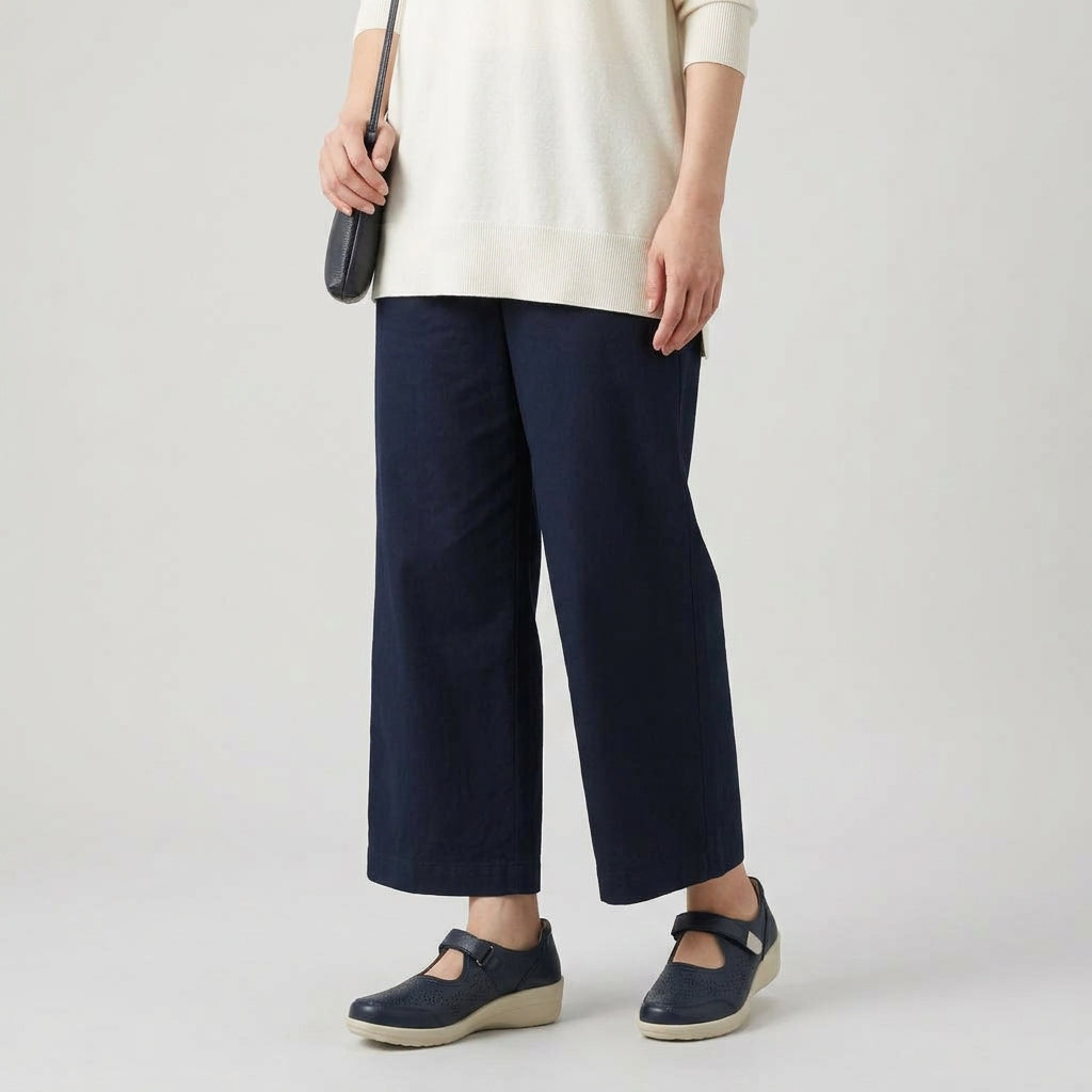 足幅にゆとりを持たせ、締め付けにくい履き心地