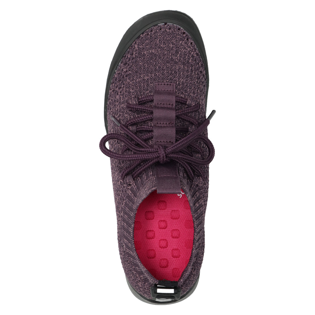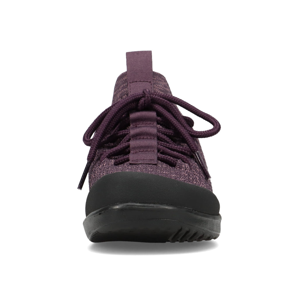 ニット素材が足全体を包んでくれます。軽量でクッション性も良いです。靴ベラを使わなくても後ろのわっかを引っ張るだけで、紐を外さずにスッと履くことができます。