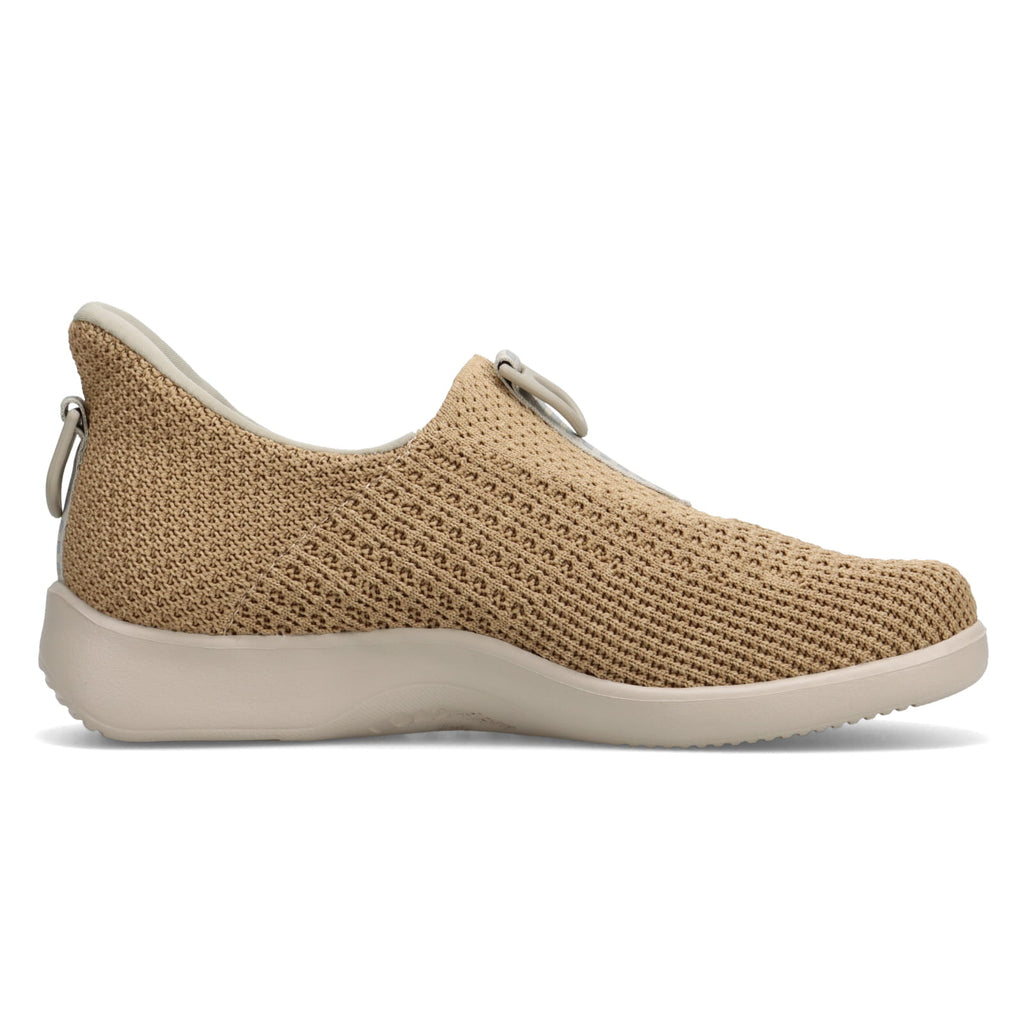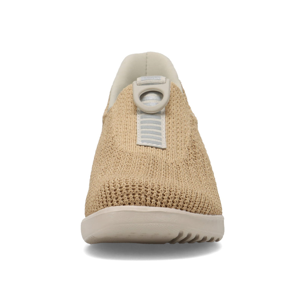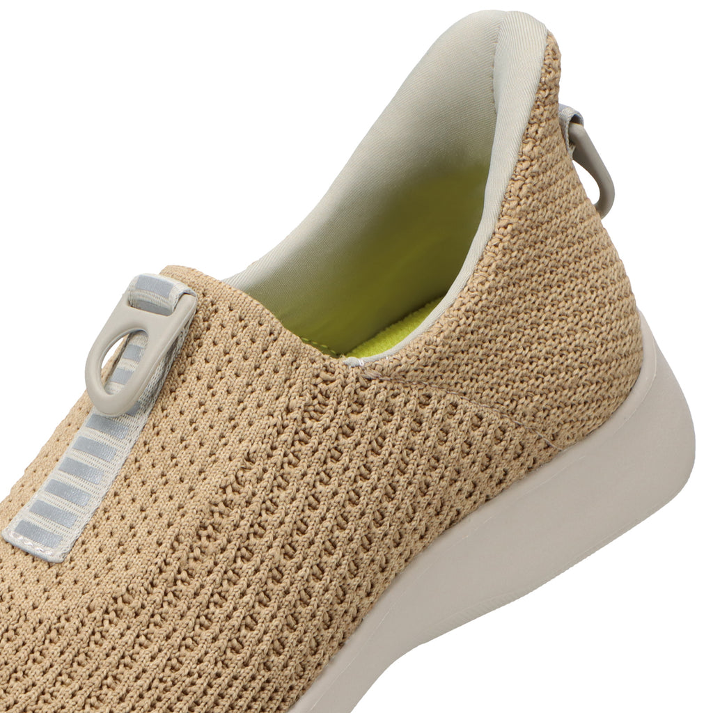 独特な踵の形状とライニングのPUフォームで、手を使わずにスッと履けるスリッポンです。アッパーは一枚のニットでできているため、足を包み込むような履き心地。飽きのこないシンプルなデザインで、カジュアルな服装はもちろんスポーティな服装にもマッチします。足幅は1Eですが、ストレッチ素材のため指先は比較的ゆったりお履きいただけます。