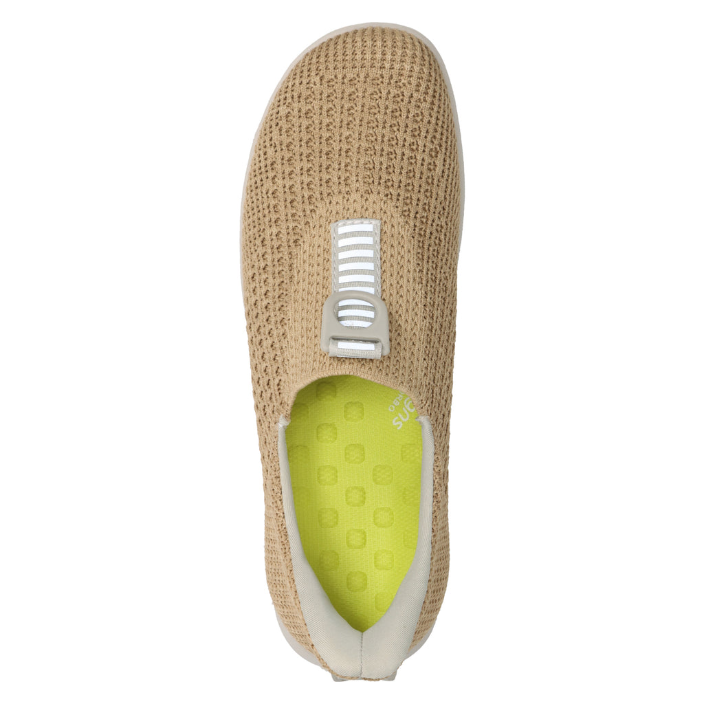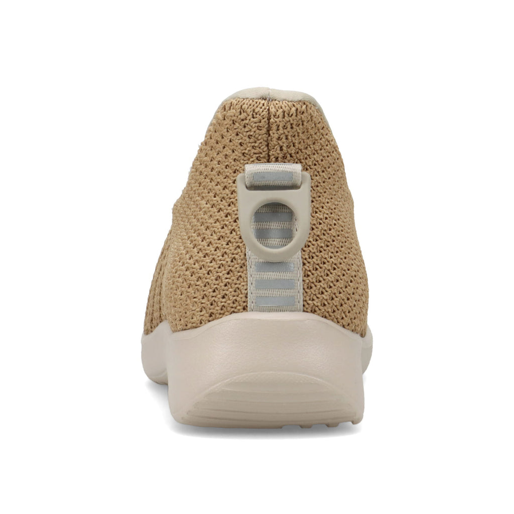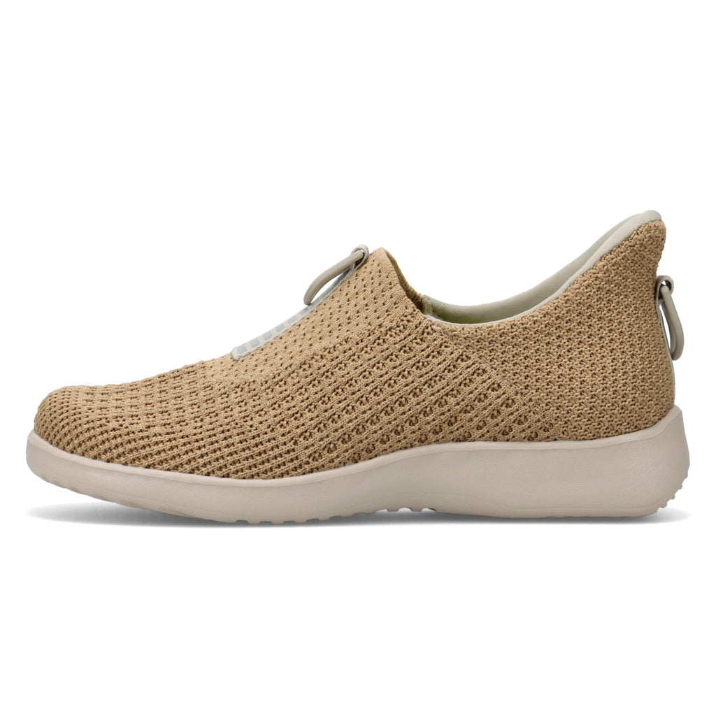 独特な踵の形状とライニングのPUフォームで、手を使わずにスッと履けるスリッポンです。アッパーは一枚のニットでできているため、足を包み込むような履き心地。飽きのこないシンプルなデザインで、カジュアルな服装はもちろんスポーティな服装にもマッチします。足幅は1Eですが、ストレッチ素材のため指先は比較的ゆったりお履きいただけます。