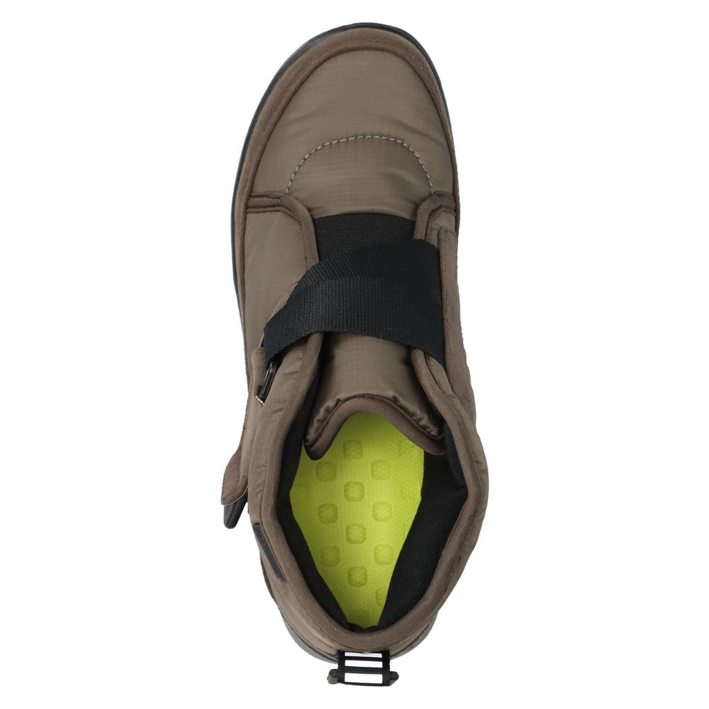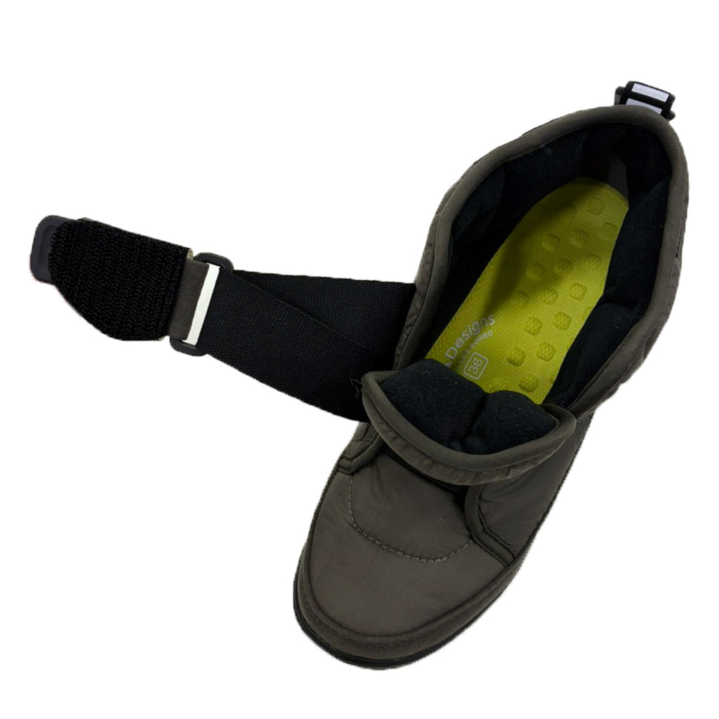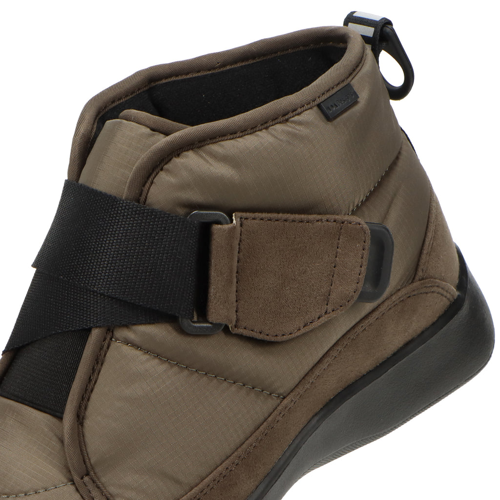 中わた入りで足元をやさしく包み込み、寒い季節も快適な履き心地。甲の砂除け部分が大きく開き、脱ぎ履きしやすい設計。太めのバンドで足をしっかりホールドし、歩行も安定します。 撥水加工で急な雨や雪の日も安心。日常の外出から冬のレジャーまで、幅広く活躍する一足です。