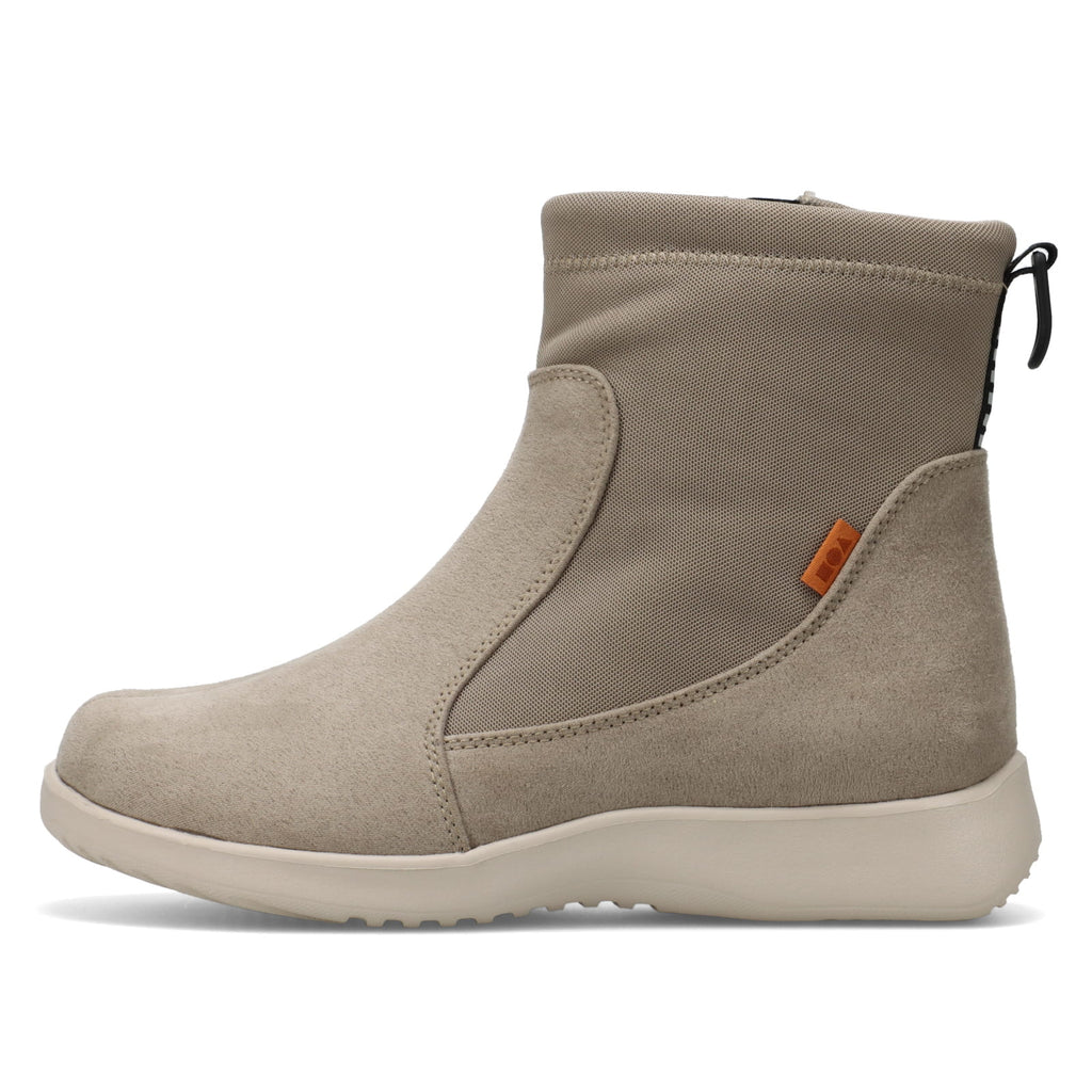 ナイロン×短毛の起毛素材で、軽やかな印象の撥水ブーツ。筒部分のナイロンは目が細かく柔らかな素材を選び、やさしく足に沿う、快適な履き心地に仕上げました。