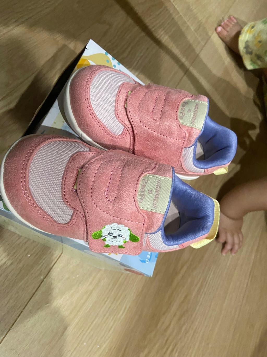 甲部分がパカッと開くので、保護者の方が片手で履かせやすい仕様になっています。