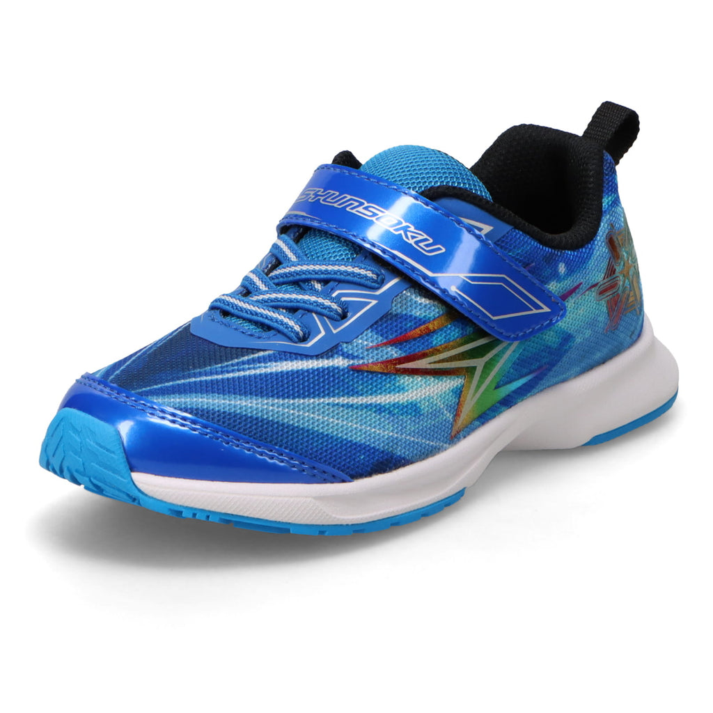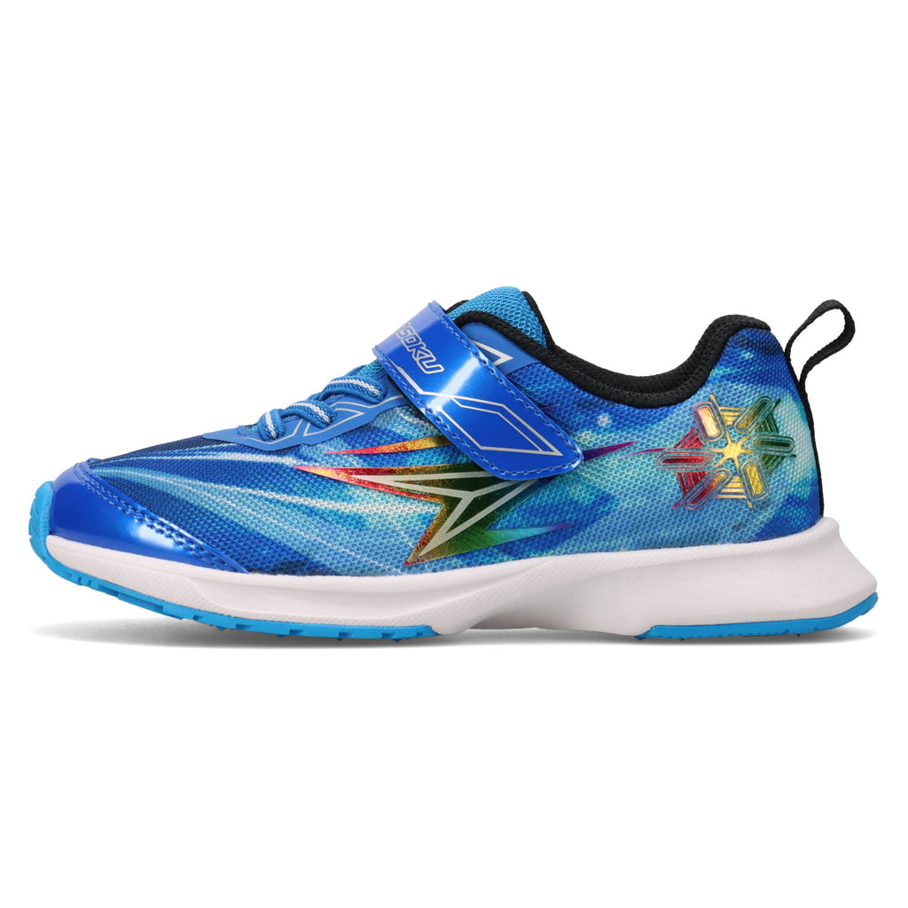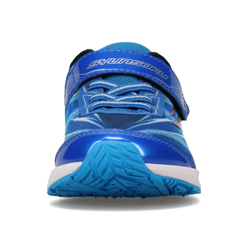 ビビットカラーのメッシュ素材、同色メタリックな甲バンド、レインボーグラデーションの瞬足ロゴでインパクト大。多くのお子様の中からも、我が子を見つけやすい!