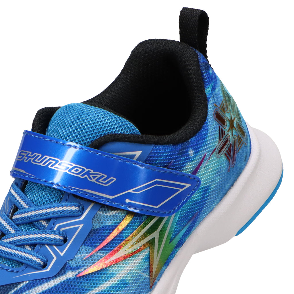 ビビットカラーのメッシュと同色メタリックな甲バンドに加え、レインボーグラデーションの瞬足ロゴでパワーも爆発!運動会でも見つけやすいインパクト抜群のモデルです。