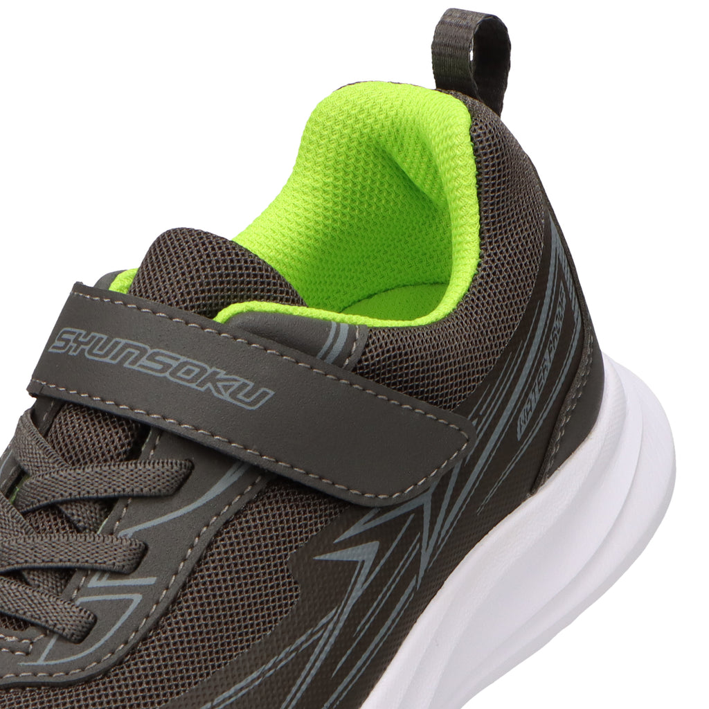 地面を面で捉えるラバー意匠と、瞬足のアイデンティティである「左右非対称ソール」が左回りのコーナリングで優れたグリップ力を発揮します。