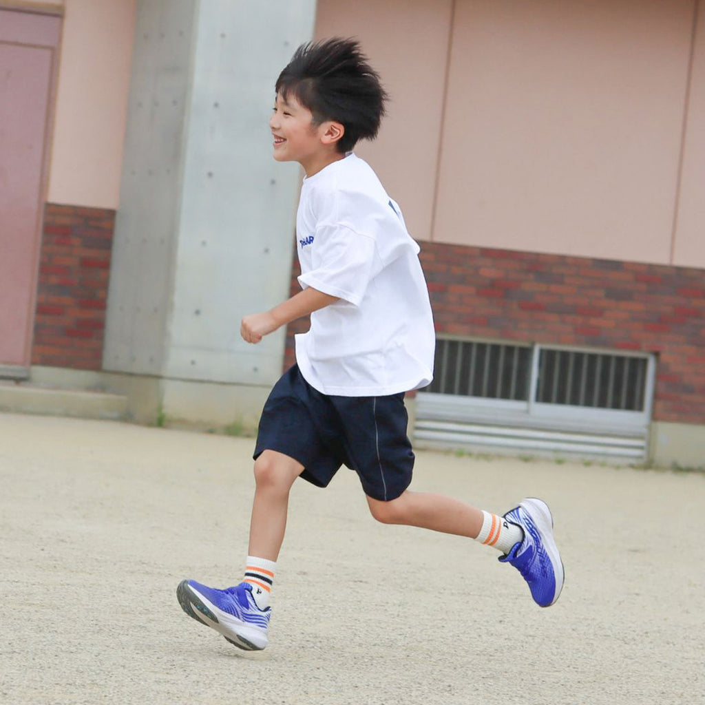 「弾むを速さに!」をコンセプトにした瞬足「WING SLIDER」モデルに、通気性を3倍(当社比)に高めたメッシュアッパーを搭載。ムレを抑えて、暑い夏も快適な履き心地をサポートします。
