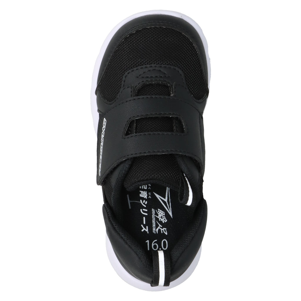 また、解剖学に基づいた立体形状のインソールで足裏全体にフィットし、自然な蹴り出しをサポート。外反母趾や偏平足など、現代の子どもたちに多く見られる足トラブルへの対策も充実しています。