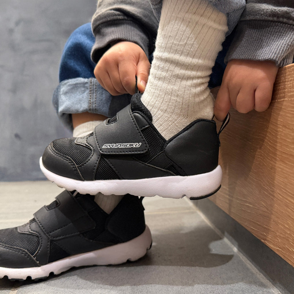 アキレスの[子ども靴設計思想]順天堂大学の[スポーツバイオメカニクス理論]から生まれた「足育(そくいく)シリーズ」より、幼児の「自分で履けた!」を応援する新しいシューズが登場しました。