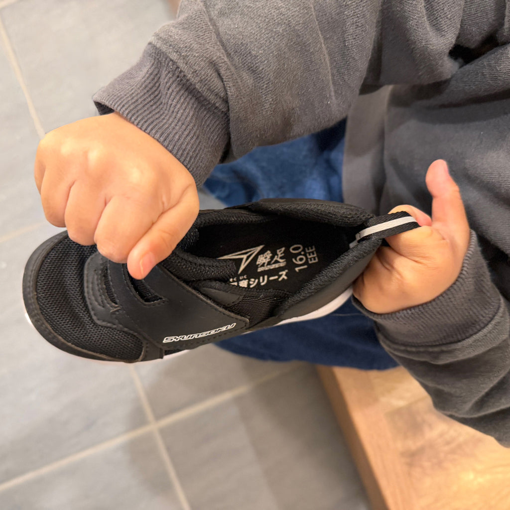 自分で履けた!その一歩が大きな自信に。かかと部分が大きく開く独自の新設計✨