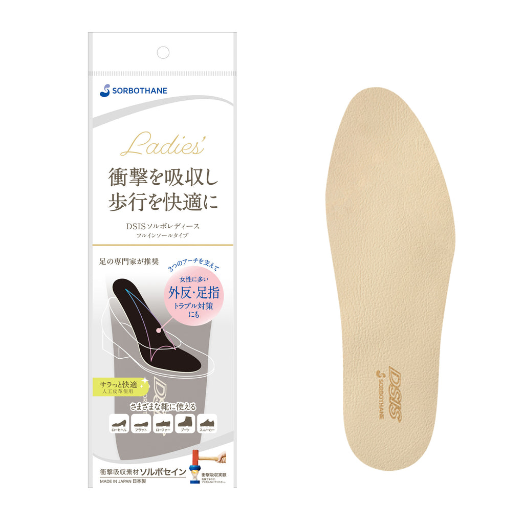 「DSIS ソルボレディース フルインソールタイプ」は、そのようなお悩みを抱える女性のために設計された高機能インソールです。